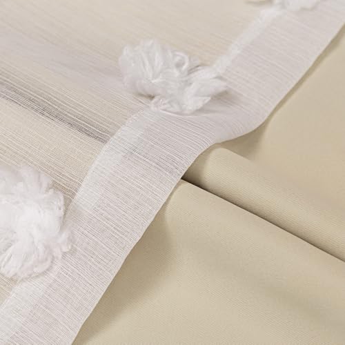 {"about_product": ["Pleasent Experience: Made of 100% polyester fiber, high-quality fabrics give you a silky touch. Double-layer design, the front sheer and the back curtain achieve a perfect elegant look", "Product Information: Includes 2 curtain panels, Each panel measures 52\" W x 84\" L | Set measures 104\" W x 84\" L, and each curtain has 8 premium anti-rust grommets on the top", "Unique Design: The unique big pom pom design looks very high-end, update the look for your room. Our 2 layers sheer and curtains window treatments look great in any style of home, offering a lightweight, airy feeling that softens the ambience of a room", "2 Bonus Tie-backs that allows you to tie them up in different ways. You could create a variety of combinations to suit different scenarios. Not only do they block out sunlight and provide privacy, but they also add a touch of style to any room", "Easy To Care: Both machine and hand washable. No bleach. Tumble dry. Cool iron if needed"], "product_description": null, "product_information": {"ASIN": "B0C6SQLVZ7", "Size": "52\"W x 84\"L (Pack of 2)", "Brand": "MYSKY HOME", "Color": "Blush Pink", "Style": "Modern", "Theme": "2 Layers Sheer and Curtains Sets", "Opacity": "Room Darkening Inches", "Pattern": "Solid", "Seasons": "All Season", "Material": "Fabric", "Room Type": "Bedroom, Living Room, Dining Room, Girls Room, Boys Room", "Top Style": "Grommet", "Model Name": "2", "Unit Count": "2.0 Count", "Fabric Type": "100% Polyester", "Item Weight": "4.71 pounds", "Curtain Form": "Sheer Curtain", "Manufacturer": "MYSKY HOME", "Curtain pleat": "Versatile", "Embellishment": "Pom Pom", "Hanging Method": "Grommet", "Package Weight": "2.14 Kilograms", "Number of Items": "2", "Special Feature": "Room Darkening, Window Treatments", "Best Sellers Rank": "#29,644 in Home & Kitchen (See Top 100 in Home & Kitchen) #241 in Window Curtain Panels", "Lining Description": "Unlined", "Product Dimensions": "84\"L x 52\"W", "Included Components": "2 Panels, Grommet, Tie Back", "Date First Available": "August 1, 2023", "Indoor/Outdoor Usage": "Indoor", "Age Range (Description)": "Adult", "Compatible with Rod Size": "1.18 Inches", "Product Care Instructions": "Machine Wash,Hand Wash,Do Not Bleach,Tumble Dry,Cool Iron If Needed", "Specific Uses For Product": "Room Darkening", "Recommended Uses For Product": "Indoor"}, "product_details": {"Brand": "MYSKY HOME", "Color": "Blush Pink", "Opacity": "Room Darkening Inches", "Material": "Fabric", "Product Dimensions": "84"L x 52"W"}}