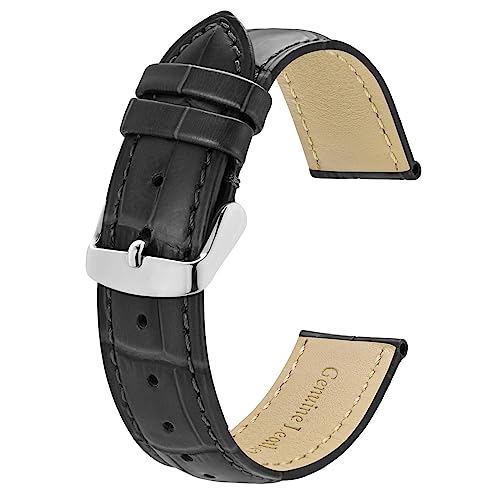 {"about_product": ["Band Material: High-quality calfskin with alligator grain embossing, lining with soft genuine leather, breathable and comfortable to wear, solid stainless steel buckle", "Band Design: Adopting a padded style, this strap tapers in thickness from 5mm to 3mm, vivid crocodile pattern, adding character to a watch", "Band Width (Size): Fit for different kinds of watch that uses 18mm, 20mm, 22mm, 24mm spring bars, please accurately measure your watch lug width and choose the right size", "Band Length: 75mm and 125mm. This strap is designed to fit wrists 6\" to 8\" (15.5cm-20cm), but watch geometry also impacts fit", "Package Included: 1 watch strap + 1 installation tool + 4 spring bars. Any questions about the strap, please contact us. REFUND or FREE REPLACEMENT, we will try our best to satisfy every customer"], "product_description": null, "product_information": {"ASIN": "B0C85NMY6D", "Department": "womens", "Manufacturer": "BISONSTRAP", "Customer Reviews": "4.5 4.5 out of 5 stars \n\n (1,736)", "Product Warranty": "For warranty information about this product, please click here", "Best Sellers Rank": "#112,411 in Clothing, Shoes & Jewelry (See Top 100 in Clothing, Shoes & Jewelry) #40 in Women's Watch Bands", "Item model number": "BNP-8A-US", "Date First Available": "June 15, 2023"}, "product_details": {"Material": "Leather", "Clasp type": "Tang Buckle", "Metal type": "Stainless Steel", "Item type name": "Bracelet"}}