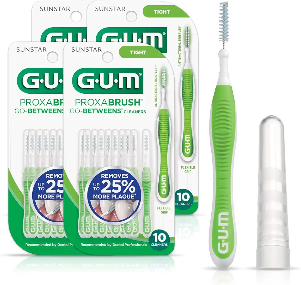 GUM Proxabrush Go-Betweens - Tight - Interdental Brushes - Soft Bristled Dental Picks for Plaque Removal Health - Safe for Braces & Dental Devices, 10 Count (Pack of 4)