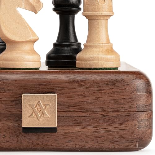 A&A Premium Natural Walnut Folding Chess Board Game Set, 15" Wooden Chess Board & 3" King Height Staunton Chess Pieces with 2 Extra Queens, Portable Travel Chess Set with Storage Bag