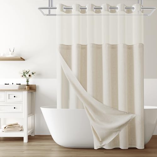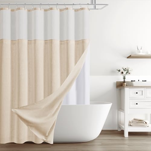 {"about_product": ["Natural Linen Blend: Made from imported flax linen fabric, it retains natural speckled texture that is soft and light on the skin. The subtle linen flecks and cross-hatch texture on the fabric creates a unique and elegant look, bringing a neutral cozy to your bathroom.", "Boho Farmhouse Bathroom Curtain: Advanced two-colour yarns are woven in parallel and twice as dense as traditional weaves. The high density weave provides maximum privacy and the simple, basic solid colour instantly enhances your bathroom taste while adding a touch of rustic charm and sophistication to your bathroom décor. This naturally elegant linen shower curtain is perfect for modern bohemian, rustic, and contemporary farmhouse bathroom decor.", "Weighted Hem and Water-Repellent: The hem of this linen shower curtain is weighted to hold it in place and prevent it from flying up during use. The surface of the shower curtain is treated with a water-coating that encourages water droplets to form and roll off quickly, helping to keep your bathroom clean and dry. For optimal water-coating, we recommend using a liner with this shower curtain.", "Easy to Install: Our linen shower curtain features a reinforced top head and rust-resistant grommet holes. Installation is as easy as attaching the grommet to the shower rod. The round hole is 0.39\" in diameter and can be used with any type of ring or hooks (included).", "Packaging and Care Instructions: Includes linen shower curtain with reinforced meta holes. 12 metal hooks, rust resistant and easy to slide over the shower curtain. Supports machine washing (please machine wash in cold water with a mild detergent and hang to dry. Do not bleach or tumble dry)."], "product_description": null, "product_information": {"ASIN": "B0CGRC4VGS", "Size": "72\"W x 72\"L (Pack of 1)", "Brand": "Naturoom", "Color": "Linen", "Style": "Cottage,Bohemian,Farmhouse,Modern,Country,Rustic,Elegant", "Theme": "Farmhouse", "Opacity": "Sheer,Semi-sheer", "Pattern": "Solid", "Seasons": "All Season", "Material": "Linen", "Room Type": "Bathroom", "Top Style": "Grommet", "Model Name": "1", "Unit Count": "1.0 Count", "Weave Type": "Knitted", "Fabric Type": "Linen", "Item Weight": "1 pounds", "Curtain Form": "Shower Curtain", "Manufacturer": "Naturoom", "Curtain pleat": "Pencil", "Hanging Method": "Grommet", "Package Weight": "0.86 Kilograms", "Number of Items": "1", "Special Feature": "Washable, Water Repellent, Weighted, Wrinkle Free", "Best Sellers Rank": "#3,464 in Home & Kitchen (See Top 100 in Home & Kitchen) #3 in Shower Curtain Sets", "Item model number": "NAYL", "Lining Description": "Unlined", "Product Dimensions": "72\"L x 72\"W", "Included Components": "Grommet, Hook", "Date First Available": "August 28, 2023", "Indoor/Outdoor Usage": "Indoor", "Age Range (Description)": "Adult", "Compatible with Rod Size": "0.39 Inches", "Product Care Instructions": "Machine Wash", "Specific Uses For Product": "Shower", "Recommended Uses For Product": "Indoor"}, "product_details": {"Brand": "Naturoom", "Color": "Linen", "Opacity": "Sheer,Semi-sheer", "Material": "Linen", "Product Dimensions": "72"L x 72"W"}}