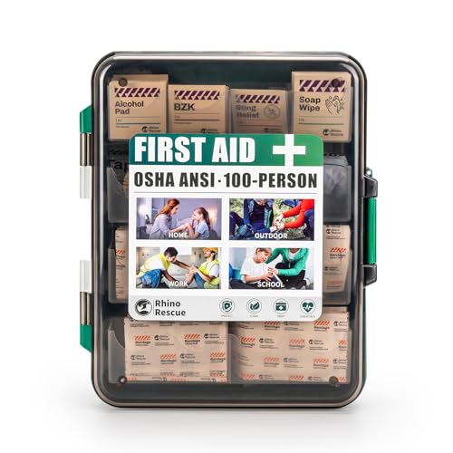 {"about_product": ["【Contents】Fully packed with 371 pcs premium emergency medical supplies - assorted bandages, gauzes, pads, burn gel packet, instant cold pack, tapes, gloves, etc. It meets international medical standards, suit for minor cuts, scrapes, sprains and burns.", "【Easy Accessibility】The box multi-compartment design, with its tilting shelves and transparent lid, allows you to organize your supplies efficiently and locate medical supplies in an emergency quickly. It can be hung on the wall for easy access and retrieval.", "【Stop Bleeding & Reduce Pain】For minor cuts, scratches, or other injuries, both bandages and gauze pads can effectively stop bleeding. The gauze pads also protect the wound from external environmental pollution and friction, effectively reducing pain and discomfort.", "【Clean Wounds】The plentiful pads, soap wipes and cotton swabs can handle multiple emergency situations, quickly clean and treat wounds in the first time.", "【Easy to Carry】Case measures (L)11.6\" x (W)4\" x (H)13\", 3 lbs weight. The multifunctional first aid kit is elegantly designed and can be easily carried anywhere, such as outdoors, in the car, etc, to provide prompt first aid support to your family members."], "product_description": null, "product_information": {"ASIN": "B0CLNZ8KM4", "Manufacturer": "RHINO RESCUE", "Customer Reviews": "4.8 4.8 out of 5 stars \n\n (590)", "Best Sellers Rank": "#20,759 in Health & Household (See Top 100 in Health & Household) #26 in First Aid Kits (Health & Household)", "Item model number": "US-First Aid Kits", "Package Dimensions": "12.91 x 11.57 x 4.02 inches; 3 Pounds", "Date First Available": "October 24, 2023"}, "product_details": {"Brand": "RHINO RESCUE", "Color": "Red", "Special Feature": "Mountable", "Number of Pieces": "371", "Recommended Uses For Product": "Boating, Business, Car, Construction, Emergency Preparedness, Home, Sports"}}