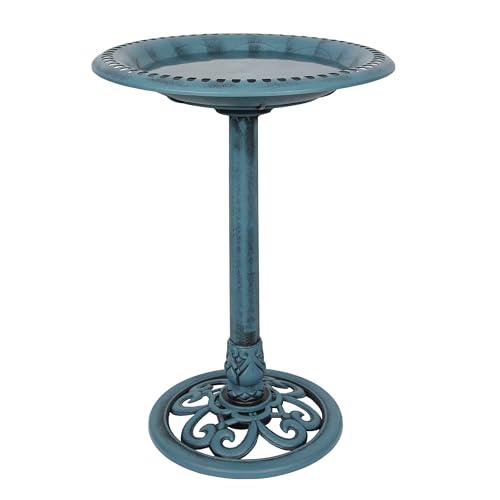 {"about_product": ["28\" PEDESTAL BIRDBATH WITH BASE: Attracts songbirds and butterflies to your outdoor space, adding movement and life to any garden, patio, backyard, or deck. The perfect centerpiece to create a peaceful, nature-filled retreat right at home.", "ELEGANT OUTDOOR ACCENT: Transform your garden or patio with this 28\" bronze pedestal birdbath featuring intricate scrollwork detailing and a timeless finish that complements any landscape.", "INVITES NATURE IN: Provides a serene water source to attract birds and butterflies — turning your yard into a peaceful, living garden display.", "STURDY & STABLE DESIGN: Includes metal ground stakes for added stability, keeping your birdbath secure even in windy conditions.", "BUILT TO LAST: Crafted from durable, weather-resistant materials that maintain their color and charm through every season.", "VERSATILE PLACEMENT: Perfect for gardens, patios, porches, or walkways — a beautiful centerpiece that adds life and elegance to your outdoor décor."], "product_description": "Attract all types of birds to your outdoor living space with the Alpine Corporation Pedestal Birdbath with Scrollwork Base. This stunning antique bronze birdbath captivates a variety of birds and feathered friends while bringing life to any garden, patio, backyard, or deck. Boasting an elegant pedestal design with an exquisite scrollwork base, this birdbath creates a captivating focal point while complimenting the natural beauty of your outdoor sanctuary. It stands at an impressive 28\" for easy bird watching, and the spacious 20\" diameter basin allows multiple small birds to drink, splash, and bathe safely at the same time. Crafted with precision from heavy-duty polypropylene material, this pedestal birdbath has a lightweight design for easy relocation while maintaining stability and durability year after year. Two convenient U-hooks and ground stakes make setup a breeze, and you can customize the base by filling it with gravel or stones, adapting the weight to suit your preferences. With Alpine's 1-year support, you can shop with assurance and buy with confidence.", "product_information": {"ASIN": "B0CSF1MQCS", "Item Weight": "3.74 pounds", "Manufacturer": "Alpine Corporation", "Best Sellers Rank": "#2,456 in Patio, Lawn & Garden (See Top 100 in Patio, Lawn & Garden) #1 in Birdbaths", "Item model number": "TEC116BZ", "Product Dimensions": "20 x 20 x 28 inches"}, "product_details": {}}