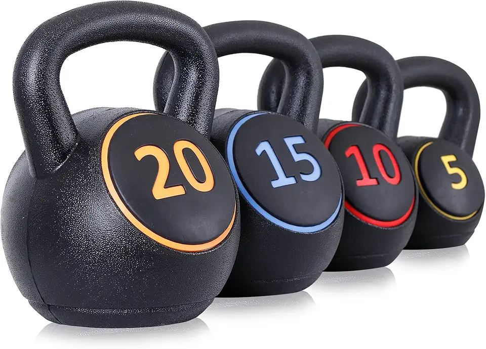 F2C Kettlebell Sets 4 Piece Strength Training KettleBells Weight Set 5lb, 10lb, 15lb, 20lb HDPE Coated Concrete Kettle bell Core Training or Women & Men for Full Body Workout & Exercise Fitnes