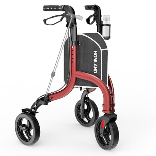 {"about_product": ["【Versatile 3-Wheel Rollator】Featuring a durable frame, spacious storage pouch plus a cane hold and a cup holder. This Wheeled rollator offers stability indoors and outdoors. Its 8-inch big casters provide easy maneuverability through narrow spaces, making it ideal for seniors seeking portable stability", "【Lightweight and Strong】 Weighing just 10.4 pounds, this wheeled walker is easy to lift into the trunk, yet its sturdy frame supports up to 260 pounds. With adjustable height ranging from 36 to 40 inches, it accommodates users between 4‘8“ and 6’1”", "【Premium Features for Added Convenience】This rollator walker includes a cup holder and a Cane holder, along with an ergonomic height-adjustable handle designed to provide a secure grip for seniors and delicate hands. Its intuitive push-up brake and push-down wheel lock ensure ease of use", "【Smooth Mobility on Any Terrain】 Premium 8-inch wheels ensure smooth transportation over any terrain, enhancing ease of movement both indoors and outdoors", "【Foldable and Compact】 Featuring a 2-side folding design, this portable rollator easily folds with one hand and maintains a standing position for effortless storage and transport. Perfect for navigating narrow spaces with ease"], "product_description": null, "product_information": {"ASIN": "B0CZ6MVXKZ", "Manufacturer": "HOMLAND", "Customer Reviews": "4.4 4.4 out of 5 stars \n\n (625)", "Best Sellers Rank": "#26,616 in Health & Household (See Top 100 in Health & Household) #15 in Rolling Walkers", "Item model number": "RW310-Purple", "Product Dimensions": "29.13 x 25.6 x 38 inches; 10.3 Pounds", "Date First Available": "March 27, 2024"}, "product_details": {"Brand": "HOMLAND", "Color": "Purple", "Material": "Aluminum", "Item Weight": "10.3 Pounds", "Product Dimensions": "28"D x 16"W x 40"H"}}