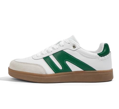 {"about_product": ["【HIGH-QUALITY】: The women's retro shoes' upper combines premium suede and genuine leather, providing a soft and comfortable feel when worn.", "【COMFORT】: These women's casual fashion sneakers feature a soft lining and cushioned insoles for outstanding comfort and ankle protection, ideal for all-day wear.", "【ANTI-SLIP】: The gum sole feature provides excellent traction and stability, ensuring a solid grip on diverse surfaces and minimizing slip risks.", "【BREATHABLE】: The casual skate shoe is designed with strategically placed perforations that not only add a stylish touch but also enhance breathability.", "【OCCASIONS】: Available in various colors, these sneakers effortlessly pair with shorts, jeans, or athleisure outfits for work, sports, daily strolls, and more."], "product_description": null, "product_information": {"ASIN": "B0CZCDKQH1", "Department": "womens", "Customer Reviews": "4.5 4.5 out of 5 stars \n\n (1,931)", "Product Warranty": "For warranty information about this product, please click here", "Best Sellers Rank": "#2,025 in Clothing, Shoes & Jewelry (See Top 100 in Clothing, Shoes & Jewelry) #4 in Women's Walking Shoes #11 in Women's Fashion Sneakers", "Date First Available": "March 29, 2024"}, "product_details": {"Closure type": "Lace-Up", "Sole material": "Rubber", "Inner material": "Suede", "Outer material": "Leather"}}