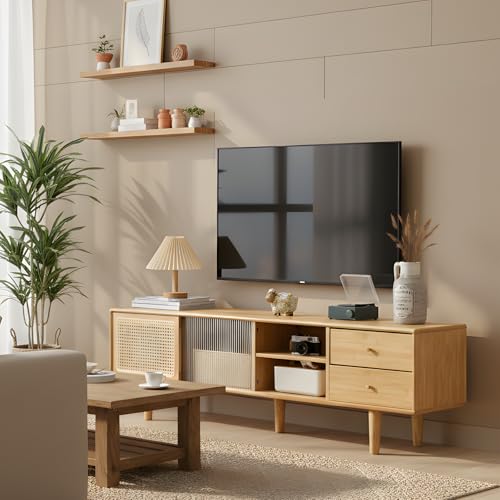 {"about_product": ["Rattan TV Stand to 55\" 60\": The TV console in our picture takes a 32\" TV console as an example. Measuring 55.1x11.8x14.17 inches, this bamboo TV stand can hold up to a 65-inch flat screen TV. Its spacious tabletop isn't just perfect for TVs but also ideal for displaying decorations like photos and vases. Versatile for living rooms and bedrooms, this Tv stand infuses elegance and charm into any room it graces.", "Premium Quality: The Bamboo TV console, designed for versatile placement, offers a blend of functionality and style, making it ideal for different settings. This Mid Century Modern Media Console for Bedroom or Living Room epitomizes durability and elegance. Crafted from durable Bamboo material, media cabinet boasts longevity, resisting cracks and warping.", "Unique Design: Emphasizing safety, the Entertainment Center with Shelf features rounded leg corners to prevent accidental damage and promote a child-friendly environment. Tv stand's triangular stability principle ensures a stable base, combining practicality and aesthetics seamlessly.", "Large Storage: The TV stand features a user-friendly open design, facilitating convenient storage. With two layers of shelves, Mid Century Modern TV stand maximizes space utilization, offering expanded storage options. This thoughtful design approach enhances practicality while providing ample room for organizing your belongings efficiently.", "Easy Assembly: The TV stand includes comprehensive step-by-step instructions for quick and easy assembly, ensuring a straightforward and hassle-free installation process with clear, detailed guidance."], "product_description": null, "product_information": {"ASIN": "B0D1BY7SGF", "Material": "Bamboo", "Item Weight": "24 pounds", "Manufacturer": "Tiita", "Best Sellers Rank": "#78,838 in Home & Kitchen (See Top 100 in Home & Kitchen) #95 in Television Stands", "Item model number": "Bamboo TV Stand", "Product Dimensions": "55.12 x 11.81 x 14.17 inches", "Date First Available": "April 10, 2024", "Product Care Instructions": "Wipe with Damp Cloth"}, "product_details": {"Size": "55.1"l", "Brand": "Tiita", "Color": "Walnut", "Style": "Modern entertainment center", "Item Weight": "24 Pounds"}}