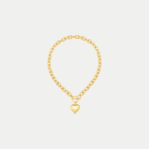 {"about_product": ["Vintage cold Plating: The unique vintage gold color gives this chumky heart nacklace a stylish aged look-freshly crafted, not second-hand. A perfect touch of retro elegance.", "Heart Necklace: The gold heart necklace features a thick chain design and a gold heart pendant to add a touch of sophistication to your everyday look,with a thick chain length of 20.5 inches, and the heart pendant itself measures 1 inches,Chain thickness 0.5 in, weight 3.54 oz/pc.", "Unique personality: The heart pendant necklace attracts everyone's attention with its unique thick chain design and eye-catching puffy heart-shaped pendant, highlighting your personality and unique taste.", "Elegant present idea: Packaged in a small present velvet bag, the chunky heart necklace, with its retro and exquisite design, becomes a thoughtful gift for her, or a good choice to reward yourself.", "Best Service: We provide the best service for this big heart necklace, if you have any questions or queries, please feel comfortable to email us, we will serve you wholeheartedly."], "product_description": null, "product_information": {"ASIN": "B0D13896JQ", "Department": "womens", "Customer Reviews": "4.5 4.5 out of 5 stars \n\n (626)", "Best Sellers Rank": "#16,595 in Clothing, Shoes & Jewelry (See Top 100 in Clothing, Shoes & Jewelry) #43 in Women's Chain Necklaces", "Date First Available": "April 7, 2024"}, "product_details": {"Gem type": "No Gemstone", "Material": "Brass", "Chain type": "Cable", "Clasp type": "Toggle", "Metal type": "Brass", "Item type name": "Necklace"}}
