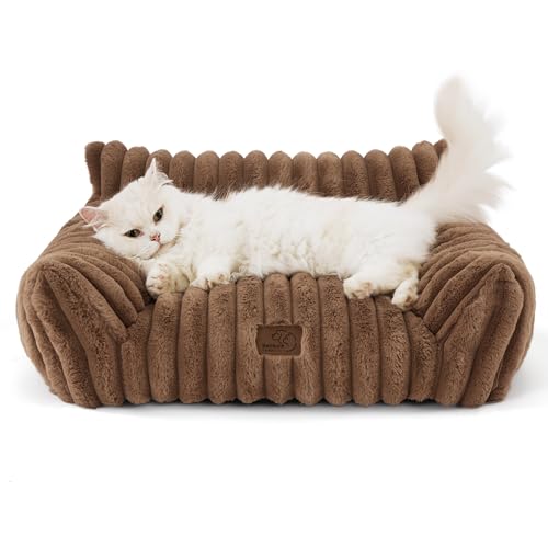 {"about_product": ["Superior Support: As the Award-Winning Pick of People Magazine, this pet couch features a three-sided design that provides optimal head and neck support for your furry friend, ensuring maximum comfort. Its high backrest also caters to pets with greater pillow needs, making it the perfect choice for a variety of dog and cat breeds.", "Balanced Comfort: This pet couch features a unique 2:1 mix of chopped foam and polyester fiber filling, offering an excellent balance of support and comfort suitable for pets of all sizes, ensuring restful and cozy naps.", "Cozy Warmth: Made with super soft faux fur material, this pet couch is warm and comfortable, perfect for autumn and winter. Your pet will love snuggling up in this cozy and luxurious bed, ideal for all seasons.", "Non-Slip Safety: Designed with an anti-slip bottom, this pet couch ensures your pet's safety and stability, preventing unwanted movement and providing a secure resting space for your furry companion.", "Easy Maintenance: The Bedsure pet couch comes with an easy-to-remove cover, making deep cleaning a breeze. Simply machine wash and tumble dry to keep the bed fresh and hygienic for your pet."], "product_description": null, "product_information": {"ASIN": "B0D31SZC4L", "Size": "24x18x10\"", "Color": "Cream", "Style": "Plush and Cozy", "Material": "Polyester", "Brand Name": "Bedsure", "Item Weight": "4.99 pounds", "Manufacturer": "Bedsure Comfy Pet", "Number of Items": "1", "Care Instructions": "Machine Wash, Tumble Dry", "Breed Recommendation": "Small", "Date First Available": "August 7, 2024", "Item Dimensions LxWxH": "24 x 18 x 10 inches", "Target Audience Keyword": "Cats, house-cats", "Item Package Dimensions L x W x H": "16.54 x 8.23 x 7.36 inches"}, "product_details": {"Brand": "Bedsure", "Material": "Polyester", "Special Feature": "Easy to Clean, Fluffy, Non Skid Bottom, Supportive", "Product Dimensions": "24"L x 18"W x 10"Th", "Breed Recommendation": "Small"}}