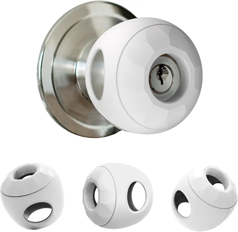 Child Proof Door Knob Covers (4 Pack), Toddler Door Locks, Baby Proof Safety Locks for Doors, Easy Install & No Tools Needed
