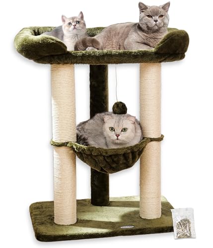 {"about_product": ["【3 Level Cat Tree】Standing 28\" in height, this cat tower is perfect for all sizes, especially adult or big cats. Allow your feline friends to scratch entirely and stretch in ample space.", "【Spacious Bed For Large Cats】An extra large cat perch sized 23.6\" x 15.7\" is an ideal widened bed givens even Maine Coons room to sprawl comfortably and have a window view. The ultra-soft cushion removable (machine-washable)for easy cleaning.", "【Scratching Heaven】Durable sisal-wrapped thick scratch posts satisfy your cat's primal urge to scratch, redirecting claws away from sofas. Tightly wound ropes withstand vigorous scratching—perfect for multi-cat households.", "【Cozy Hammock】The cat hammock on second level is a perfect spot for catnapping or bird viewing. It holds the cat like a lover's hug, full of warmth and safety.", "【Unshakable Safety】Thanks the heavy-duty base sized 21.3\" x 15.7\" which made of reinforced engineered wood, our cat tree tower stays rock-solid during wild plays. No Wobbling or tipping.", "【Entertainment Hub】From the cloud-like hammock \"hugging\" napping kitties to the dangling pom-pom teaser, every level sparks curiosity. Watch them climb, nap, and birdwatch like jungle explorers!", "【More Choices】Our 3-Tier cat stands provide 3 color options, all of which complement diverse home styles and become lovely home decor.", "【Easy assembly】With only a few simple steps, this cat scratch post with bed is easy to assemble and will be loved by your cats. Happi N Pets offers a 60-day Satisfaction Guarantee for all products."], "product_description": null, "product_information": {"ASIN": "B0D8J4H466", "Size": "Large", "Color": "Beige", "Style": "Modern", "Material": "Engineered Wood, Plush, Sisal", "Brand Name": "Happi N Pets", "Model Name": "DB25M", "Item Weight": "6 Kilograms", "Manufacturer": "Happi N Pets", "Number of Items": "1", "Care Instructions": "Machine Wash", "Item model number": "DB25M", "Included Components": "Cat Bed, Hammock, scratching posts", "Breed Recommendation": "All Breed Sizes", "Date First Available": "July 1, 2024", "Warranty Description": "60 Days", "Age Range Description": "Adult", "Item Dimensions LxWxH": "21.3 x 15.7 x 28 inches", "Target Audience Keyword": "Cats", "Specific Uses for Product": "Climbing, Scratching, Sleeping", "Item Package Dimensions L x W x H": "27.56 x 19.69 x 11.81 inches"}, "product_details": {"Material": "Engineered Wood, Plush, Sisal", "Mounting Type": "Floor Mount", "Product Dimensions": "21.3"L x 15.7"W x 28"H", "Breed Recommendation": "All Breed Sizes", "Specific Uses For Product": "Climbing, Scratching, Sleeping"}}