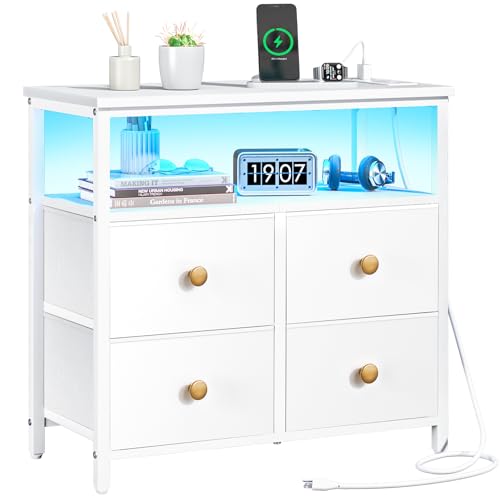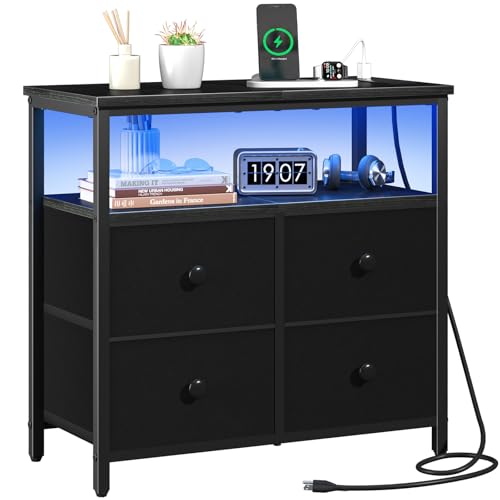 {"about_product": ["Always by Your Side. Bed Side Table Overall Dimensions: 24.5\"L x 11.8\"W x 23.7\"H", "【Nightstand with Charging Station】The white nightstand with 2 outlets & 2 USB ports, allowing you to use multiple plugs simultaneously to meet your charging needs fully. The extra hidden USB port powers LED light, freeing up USB ports for more important. Experience the convenience of extended reach with a 6.56ft cord for the small nightstand—ideal for any room setup.", "【LED Nightstand】The night stand with drawers boasts an LED strip controlled via an app or remote, choose from 22 dynamic modes and color adjustments to align with your mood or sync to music for a personalized experience. Plus, you can use the timer for easy light control. The LED strip is dual-attachment by adhesive and screws for long-lasting illumination.", "【Storage & Decorative Solutions】The dresser has a spacious 24.5\" tabletop and an open shelf to display or securely house stuff like phones, tablets, decorations, etc. Additionally, 4 fabric drawers provide ample storage to keep your bedroom organized and clutter-free. Yoobure dresser for bedroom will be an awesome bedside companion.", "【Durable Versatile Nightstand】The nightstand with drawers is crafted from premium wood with a durable steel frame, available in various colors to match any decor. Our nightstand is made from FSC-Certified wood. More than just bedside tables, they double as end tables, storage dressers, or side tables bedroom. Ideal for the living room, bedroom, study, kitchen, and more, making any space both functional and chic.", "【Easy to Assemble】Assembling the wood nightstand is a breeze! Yoobure bed side table with drawers includes a detailed manual, labeled parts, assembly tools, and a QR video guide(You can also check the video on the product page), allowing for smooth and quick setup."], "product_description": null, "product_information": {"ASIN": "B0D9PVQ51P", "Base": "Metal", "Size": "24.5\"L x 11.8\"W x 23.7\"H", "Color": "Black", "Shape": "Rectangular", "Theme": "Modern Wood & Metal", "Tilting": "No", "Base Type": "Leg", "Leg Style": "Straight Leg", "Top Color": "Acacia", "Base Color": "Black", "Brand Name": "Yoobure", "Item Width": "24.49 Inches", "Model Name": "1", "Style Name": "Modern", "Is Foldable": "No", "Item Height": "23.74 inches", "Item Weight": "18.5 Pounds", "Handle Color": "Black", "Manufacturer": "Yoobure", "Model Number": "1", "Table Design": "Nightstand", "Material Type": "Acacia", "Item Type Name": "1", "Extended Length": "6.56 Feet", "Handle Material": "Metal", "Number of Items": "1", "Frame Joint Type": "screwed", "Furniture Finish": "Stained", "Is Customizable?": "Yes", "Best Sellers Rank": "#114,209 in Home & Kitchen (See Top 100 in Home & Kitchen) #156 in Nightstands", "Number of Drawers": "4", "Top Material Type": "Wood", "Handle Finish Type": "Wooden", "Is Stain Resistant": "No", "Tabletop Thickness": "23.7 Inches", "Frame Material Type": "Metal", "Included Components": "Assembly Guide", "Base To Top Distance": "23.74 Inches", "Indoor Outdoor Usage": "Indoor", "Is the item resizable?": "No", "Ground To Item Distance": "23.7 Inches", "Item Dimensions D x W x H": "11.81\"D x 24.49\"W x 23.74\"H", "Specific Uses For Product": "Night stand, Dresser", "Includes All Assembly Tools": "Yes", "Recommended Uses For Product": "Displaying", "Tools Recommended For Assembly": "Screw Driver"}, "product_details": {"Brand": "Yoobure", "Color": "Black", "Item Weight": "18.5 Pounds", "Frame Material": "Metal", "Product Dimensions": "11.81"D x 24.49"W x 23.74"H"}}