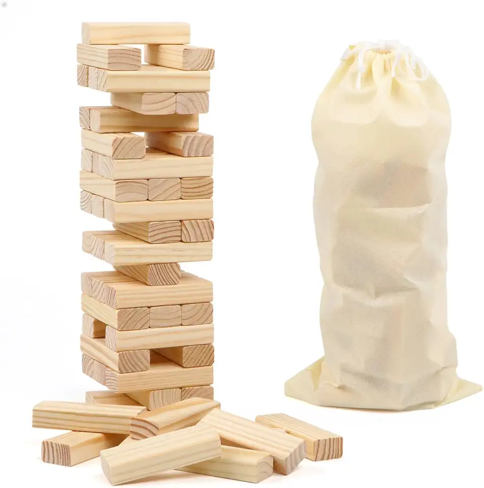 54PCS Classic Block Stacking Board Game Wooden Blocks Stacking Games for Kids and Families Tumbling Tower Blocks Game for Kids and Adults with Storage Bag