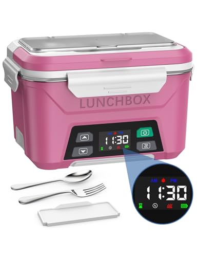 {"about_product": ["Portable Battery-Powered Heating: The adult lunch box offers battery power for meals on the go. Whether at work, in the car, or outdoors, you can heat your food without an outlet. Its 10,000mAh battery ensures one-time heating and lasting warmth, so you can enjoy hot meals anywhere", "Smart Timer Function: The lunch box for women includes a smart timer for setting your mealtime. It automatically heats your food in advance, ensuring a hot meal when you’re ready. The memory function remembers your last settings, so no adjustments are needed each time", "5.5 Cups Capacity: The lunch box heater portable holds 5.5 cups (about 1.3 L or 44 oz), accommodating about 3 servings of pasta, or 12 frozen vegetable dumplings, or a single serving of lasagna with soup. Its design allows for easy transport, making it convenient to enjoy home-cooked meals anywhere", "Removable Divider Accessory: The food warmer lunch box includes a removable divider, letting you customize your meal storage. This feature allows you to separate dishes like mac and cheese, casseroles, and steamed veggies, keeping your meals organized and ready to enjoy whenever you are", "Reliable Leak-Proof Design: The heatable lunchbox has a silicone seal on the lid, ensuring a secure closure that prevents leaks. Perfect for office workers and construction professionals, it keeps soups and sauces contained while you’re on the go. Enjoy mess-free, warm meals anytime", "Effortless Cleaning: The hot lunch box for adults features a removable meal container and lid that are dishwasher safe, along with the fork, spoon, and divider. This design makes hygiene easy—just place the washable parts in the dishwasher for hassle-free cleaning", "Rich Accessories Included: The lunch warmer portable for work includes essential accessories like forks and spoons. It features a removable divider to separate foods and comes with a portable insulated bag that can be carried by hand or over the shoulder, making it perfect for on-the-go meals", "Great Present for Workers: The self heating lunch box is perfect for blue-collar workers and office-goers who want hot meals on the job. It's a thoughtful surprise for friends and family, ensuring they enjoy a warm lunch after long hours at work. Convenient and practical, it enhances every meal"], "product_description": "Quick Tips for Using Your Lunch Box:\n 1. The top of the lunch box lid has a space for your fork and spoon, with a groove and a snap-on transparent cover. If the cover gets loose or falls off, just snap it back on.\n 2. The lid will only close properly when the meal container is inside. If you remove the container, the lid won’t close. Always make sure the container is in place before closing the lid.\n \n To Use The Lunch Box's Scheduled Heating Function:\n 1. Please first set the current time to match the actual time, then set the meal time.\n 2. For first-time use, please fully charge the device. Before each use, check the battery level. It should be at least 90%.\n 3. Please note that the lunch box must be powered on to activate automatic heating.\n \n Important Information About Battery-Powered Lunch Boxes:\n Our portable battery-powered lunch box lets you heat food without plugging in, so you can enjoy warm meals anywhere—at work, on a road trip, or during outdoor adventures. However, the large-capacity rechargeable battery adds extra weight, making the heater weigh 2.8 pounds, slightly more than the typical 2 pounds of standard electric lunch boxes that require plugging in.\n To Ensure Battery Longevity:\n 1. Only Use the Original Charger: Other chargers (even if they fit) are not compatible! Using any other charger may permanently damage your product.\n 2. Only Use the Original Battery: Other battery packs are not compatible.\n \n For Best Heating Results:\n 1. The display shows the temperature of the heating element, while the actual food temperature is usually lower to avoid overheating, which can cause burns and affect taste. Our lunch box is designed to evenly heat food to the ideal temperature after 2 hours.\n 2. Foods with higher moisture content heat more effectively. If moisture is low, adding a small amount of water or increasing the set heating temperature (note that this temperature refers to the heating element, not the food itself) can be beneficial.\n 3. Please consider contact with the container bottom: The device heats from the bottom, so it’s helpful for food or water to be in contact with the container bottom to capture heat. For irregularly shaped foods like chicken legs, adding a bit of sauce or a few drops of water can assist in gathering steam and heating the food more thoroughly.\n 4. It’s recommended to use the original stainless steel container: For compatibility, please use only the original container.\n 5. You might want to use an insulated bag: Placing the device in an insulated bag, whether original or otherwise, can help retain heat and improve food warmth.\n \n Caution: The inner container is made of food-grade 304 stainless steel and contains nickel. Those allergic to nickel should avoid use.", "product_information": {"UPC": "850066822869", "ASIN": "B0DJVWK1QF", "Brand": "EAST OAK", "Color": "Pink", "Shape": "Rectangular", "Style": "Pink", "Theme": "Car, Office, Outdoors, Travel, Truck", "Pattern": "Solid", "Capacity": "5.5 Cups", "Material": "Stainless Steel", "Batteries": "1 Lithium Ion batteries required. (included)", "Item Form": "Bag, Box", "Unit Count": "1.0 Count", "Item Weight": "2.8 pounds", "Closure Type": "Snap", "Manufacturer": "EAST OAK", "Number of Items": "1", "Special Feature": "5.5 Cups Capacity, Battery Powered, Complete Accessory Set, Direct Time Setting Mode, Dishwasher Safe, Heat Then Keep Warm for 1 Hour, Leak Resistant, Memory Settings, Scheduled Heating, With Carry Handle", "Number of Pieces": "1", "Best Sellers Rank": "#2,013 in Kitchen & Dining (See Top 100 in Kitchen & Dining) #19 in Lunch Boxes", "Item mod