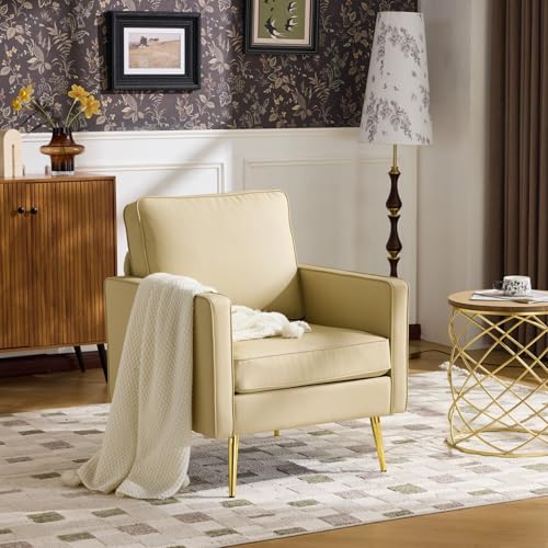 {"about_product": ["Stylish Design—This accent chair features a mid-century modern style with brown PU leather upholstery and sleek gold-toned metal legs.", "Comfortable and Supportive— Generously padded seats and armrests provide exceptional comfort, perfect for relaxing or entertaining guests.", "Compact Dimensions—Measuring 31.8\" D x 30.8\" W x 33\" H, this chair is ideal for small spaces while still providing ample seating.", "Versatile Use—It is perfect for living rooms, bedrooms, home offices, or any space needing extra seating, whether as a reading chair in the bedroom or a statement piece in the living room.", "Easy Assembly—Assembly is quick and straightforward with clear instructions and minimal steps, so you can start enjoying your new armchair in no time. Please note that the cushions are vacuum packed and may take 2-3 days to fully expand to their original shape"], "product_description": null, "product_information": {"ASIN": "B0DK8VNTS4", "Size": "31.8\" L x 30.3\" W x 33\" H", "Brand": "VINGLI", "Color": "Brown", "Style": "Mid-Century Modern", "Pattern": "Solid", "Tilting": "No", "Arm Style": "Straight", "Leg Style": "Tapered Leg", "Room Type": "Apartment, Bedroom, Home Office, Living Room, Playroom", "Back Style": "Mid Back", "Seat Depth": "21.2 inches", "Form Factor": "Armchair", "Is Foldable": "No", "Item Weight": "47.4 pounds", "Seat Height": "18.1 Inches", "Seat Length": "23.6 Inches", "Manufacturer": "VINGLI", "Fill Material": "Leather", "Is Customizable": "No", "Special Feature": "Arm Rest, Removable Cover, Space Saving, Upholstered Leather", "Best Sellers Rank": "#799,865 in Home & Kitchen (See Top 100 in Home & Kitchen) #1,438 in Living Room Chairs", "Item model number": "645f1727-a444-482e-9bee-b6ff861aa624", "Product Dimensions": "31.8\"D x 30.3\"W x 33\"H", "Date First Available": "October 18, 2024", "Indoor/Outdoor Usage": "Indoor", "Age Range (Description)": "Adult", "Reclining Position Count": "1", "Seat Back Interior Height": "17.3 Inches", "Assembly Instructions Description": "Assembly is quick and straightforward with clear instructions and minimal steps."}, "product_details": {"Size": "31.8" L x 30.3" W x 33" H", "Brand": "VINGLI", "Color": "Brown", "Material": "Faux Leather", "Product Dimensions": "31.8"D x 30.3"W x 33"H"}}