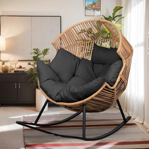 {"about_product": ["Elegant Retro Rocking: The egg rocking chair outdoor offers a super soft cloudy cushion. It's padded with high quantity cotton which embrace you from all sides. So you can stretch out solo with a book or relax on this egg chair at any time.", "Hand-Woven PE Rattan: We use premium handwoven PE wicker for this oval basket chair. The wicker is sturdy and not easy to break which guarantees this set will last longer, suitable for outdoor garden, lawn, terrace, pool, coffee time and reading time.", "Sturdy and Durable Construction: Made of heavy-duty steel frame with powder-coated treatment to combat water, UV rays, and rust. this egg chair has a solid load capacity of 450lbs, creating a stable lounging experience for you.", "Overall Dimension: W 36.8\" x L 51.1\" x H 51.1\", Seat Height: 13\". An extra-wide opening gives ample overhead expanse for taller people, while a large seat lets you curl up in comfort with your favorite books or media devices.", "Easy Assembly: All parts and instructions are cleverly packed into one box for easy assembly. If any questions, please contact us via amazon message, we have professional after-sale team to help you solve the problem."], "product_description": null, "product_information": {"ASIN": "B0DNSNF2DP", "Size": "Rocking Chair", "Brand": "Vongrasig", "Color": "Beige", "Shape": "Round", "Style": "Rocking Egg Chair", "Theme": "Retro", "Pattern": "Beige", "Model Name": "TBDLY", "Unit Count": "1.0 Count", "Fabric Type": "Rattan", "Item Weight": "38.5 pounds", "Pillow Type": "Hammock Pillow", "Manufacturer": "Vongrasig", "Fill Material": "Cotton", "Cover Material": "Cotton", "Number of Items": "1", "Special Feature": "Head Support", "Best Sellers Rank": "#2,952 in Patio, Lawn & Garden (See Top 100 in Patio, Lawn & Garden) #2 in Patio Lounge Chairs", "Item model number": "TBDLY", "Product Dimensions": "32.3\"L x 38.4\"W", "Date First Available": "November 22, 2024", "Indoor/Outdoor Usage": "Indoor, Outdoor", "Item Firmness Description": "Soft"}, "product_details": {"Size": "Rocking Chair", "Brand": "Vongrasig", "Color": "Beige", "Pillow Type": "Hammock Pillow", "Fill Material": "Cotton"}}