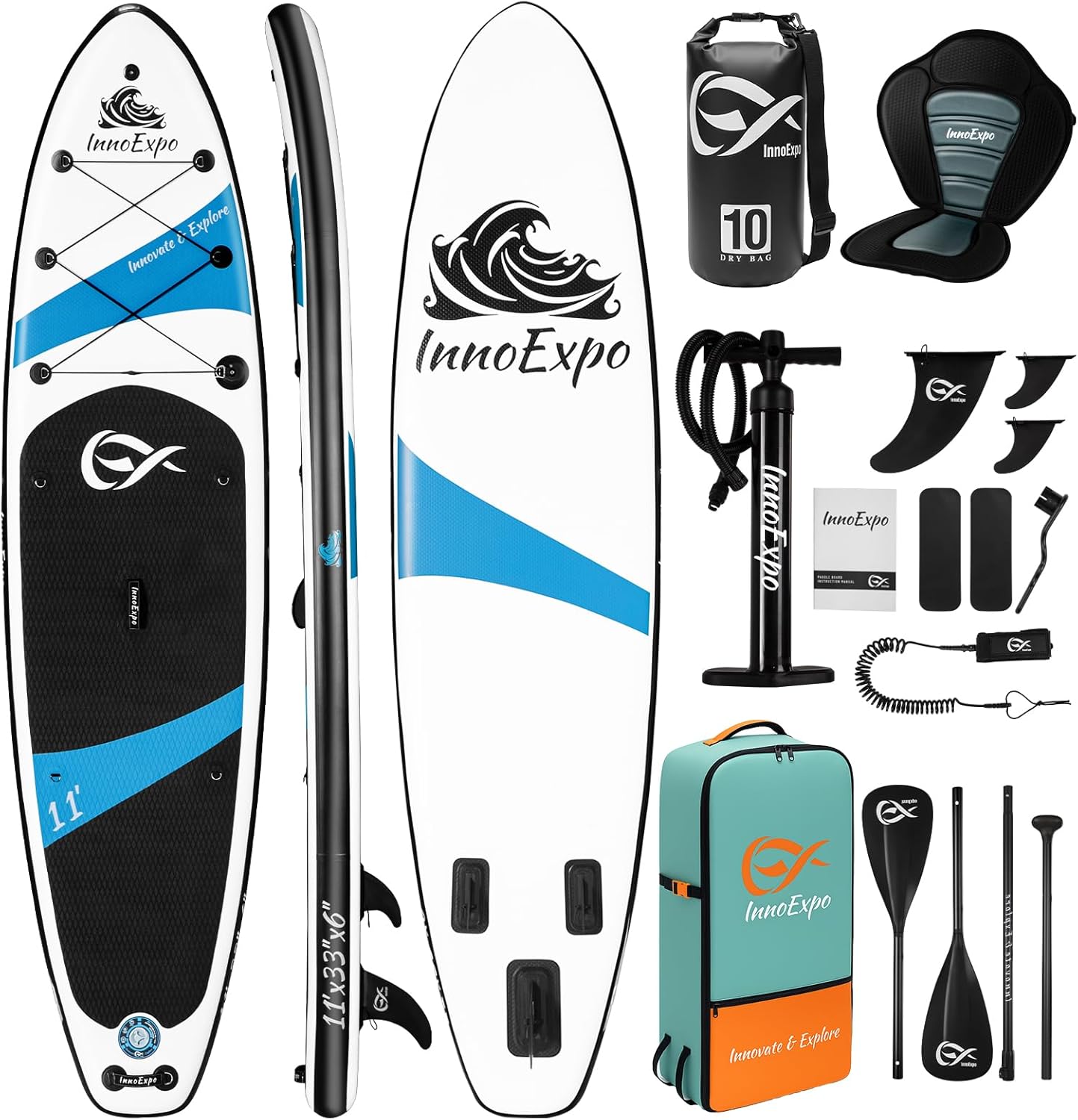 {"about_product": ["➢『Exceptional Durability and Stability』Our paddle board is a premium option used for solo paddling, yoga, or bringing pets. Crafted with dual-layer PVC, it is 35% lighter than similar models while maintaining exceptional durability. Its extra-wide design (10'6'' x 32'' x 6'') and 350 lbs weight capacity are capable of supporting users of all skill levels, causing an effortless and stable experience, even in challenging water conditions.", "➢『Premium Accessories for a Complete Experience』This paddle board is a comprehensive package that includes everything you need used for a hassle-free water adventure: an adjustable aluminum paddle, high-pressure pump, travel backpack, safety coil leash, waterproof phone bag, three removable fins, and a repair kit. With 7 integrated D-rings, it’s capable of accommodating a kayak seat, securing a cooler, or connecting with other boards, which causes greater versatility for your water activities.", "➢『Designed for Comfort and Traction』The anti-slip EVA deck is a thoughtful feature designed to provide a secure grip and reduce fatigue, making it ideal for use in yoga, fishing, surfing, and exploring in various water environments. Its comfortable surface is capable of ensuring stability for extended use, causing increased confidence and safety, no matter your skill level.", "➢『Unmatched Customer Support and Warranty』Our paddle board is a trusted choice backed by exceptional customer service. It comes with a 3-year warranty for the board and a 1-year warranty for accessories, which makes it capable of addressing any potential issues effectively. A 30-day hassle-free return policy causes peace of mind for users, knowing that support is always available used for ensuring a worry-free experience.", "➢『Lightweight and Travel-Friendly』At just 17.5 lbs, this inflatable paddle board is a travel-friendly solution for adventurers. It is used for easy transport and storage, thanks to its included travel backpack and double carrying handles. Detachable fins are capable of simplifying setup and making transportation hassle-free, causing you to focus entirely on enjoying your time on the water.", "➢『Versatile for Every Occasion』This paddle board is a multipurpose tool designed for oceans, lakes, and rivers. It is used for both relaxation and high-energy activities, from casual paddling to rigorous workouts. The robust materials and thoughtful design are capable of adapting to various conditions, causing an unparalleled experience for every water enthusiast."], "product_description": null, "product_information": {"ASIN": "B0DQTF4PCJ", "Size": "10'6x32''x6''", "Color": "Black", "Material": "Ethylene Vinyl Acetate (EVA), Polyvinyl Chloride (PVC)", "Brand Name": "InnoEpxo", "Model Name": "IE01A", "Sport Type": "Paddleboarding, Water Sports", "Item Weight": "17.5 Pounds", "Skill Level": "All Levels", "Manufacturer": "InnoExpo", "Package Weight": "12.47 Kilograms", "Suggested Users": "unisex-adult", "Best Sellers Rank": "#33,891 in Sports & Outdoors (See Top 100 in Sports & Outdoors) #24 in Stand-Up Paddleboards", "Included Components": "1 Paddle Board Pack, 1 Adjustable Paddle, 3 Removable Fins, 1 Manual Pump, 1 SUP Ankel Coiled Leash, 1 Waterproof Phone Bag, 1 Repair Kit, 1 User Manual", "Date First Available": "December 18, 2024", "Warranty Description": "1-year warranty on accessories, 3-year warranty on the board, 30-day hassle-free return policy", "Item Dimensions LxWxH": "127.2 x 32 x 0.04 inches", "Item Package Dimensions L x W x H": "34.5 x 16 x 9 inches"}, "product_details": {"Brand": "InnoEpxo", "Color": "Black", "Sport": "Paddleboarding, Water Sports", "Material": "Ethylene Vinyl Acetate (EVA), Polyvinyl Chloride (PVC)", "Item Weight": "17.5 Pounds"}}