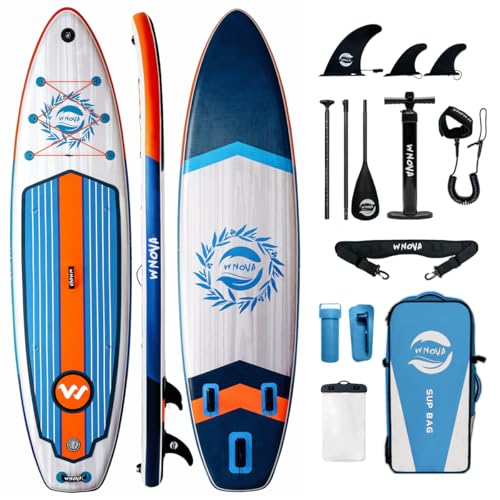 {"about_product": ["【Customer Support】: Dedicated support team provides step-by-step assistance for setup and maintenance; quick troubleshooting guidance for leaks or valve issues; hassle-free experience with lifetime technical advice", "【Durable Material】: Military-grade double-layered PVC construction ensures impact-resistant performance in fast rivers or calm lakes; no cracking or leaking for long-lasting use", "【Enhanced Stability】: 430-pound weight capacity supports 2+1 family with anti-slip EVA deck padding; ideal for beginners to master balance and advanced maneuvers safely", "【Convenient Features】: Built-in camera mount securely holds devices for hands-free recording; front bungee system organizes gear like water bottles or dry bags; quick-access storage enhances adventure comfort", "【Lightweight Portability】: Weighs only 19.6 lbs with dual handles and padded shoulder strap; deflates quickly; all accessories fit into the backpack; compact storage design for hassle-free travel", "【Full SUP Kit】: Includes high-pressure hand pump; 3-piece adjustable paddle; 3 removable fins for speed control; 1 shoulder strap; 1 ankle leash; waterproof phone bag; repair kit; travel backpack—ready to use out of the box"], "product_description": null, "product_information": {"UPC": "718550755829", "ASIN": "B0DR2NWLX4", "Brand Name": "WNOVA", "Model Name": "A49-023", "Skill Level": "All", "Manufacturer": "WNOVA", "Item Thickness": "6 Inches", "Package Weight": "13.63 Kilograms", "Suggested Users": "unisex-adult", "Best Sellers Rank": "#91,230 in Sports & Outdoors (See Top 100 in Sports & Outdoors) #66 in Stand-Up Paddleboards", "Included Components": "3 Removable Fins, 3-Piece Adjustable Floating Paddle, Hand Pump, Safe Ankle Leash, Shoulder Strap", "Date First Available": "December 20, 2024", "Warranty Description": "We provide 1-year manufacturer warranty and unlimited customer service.", "Item Dimensions LxWxH": "132 x 34 x 0.1 inches", "Maximum Weight Recommendation": "430 Pounds", "Item Package Dimensions L x W x H": "36 x 15.5 x 8 inches", "EU Spare Part Availability Duration": "1 Years"}, "product_details": {"Brand": "WNOVA", "Color": "Deep Wood Grain 11'x34"", "Sport": "Paddleboarding", "Material": "Polyvinyl Chloride (PVC)", "Product Dimensions": "132"L x 34"W"}}