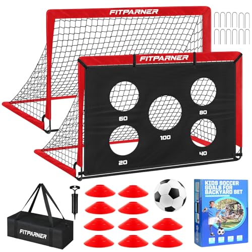 {"about_product": ["Foldable and portable soccer goals for backyard: Our small soccer goals are designed for compact spaces, making them perfect for backyard play. The foldable and portable design allows for easy movement and storage. Simply fold them down and store them in the included carrying bag for convenient transportation and quick setup for your next game.", "Quality and durability above all: 2 set of 4' x 3' soccer goals is made of 450D thickened oxford cloth and high-elastic fibreglass poles, with good toughness, wear resistance, and resilience, able to withstand prolonged use without being easily worn or damaged. can withstand the pressure exerted by the kids when they kick the ball, keeping the football frame stable and ensuring safety and reliability during games or training.", "Easy installation and portability: Setting up our soccer ball net is a breeze with clear instructions and detailed installation guidance provided in our manual. Once assembled, there's no need to dismantle it—simply fold it to an isosceles triangle and stow it in the portable bag. When you're ready to play again, unfold it and kick off without the hassle of repeated installations.", "Complete soccer goal set: Our comprehensive toddler soccer goals include two 4x3 ft soccer goals, a detachable scoring target cloth, a soccer goal portable bag, a standard size 3 soccer ball, an upgraded needle-inflated pump, and 10 training cones,8 soccer goal U-shaped metal ground stakes. Everything you need for an exciting and productive soccer training equipment is included in this set.", "With target cloth for soccer practice:This soccer set is equipped with a detachable target cloth,Featuring 5 scoring target zones to keep soccer drills fresh, enables kids to complete soccer training alone, develop shooting skills even without a goalkeeper.Perfect for fostering a love for soccer game and developing essential soccer skills in young players.", "Soccer gift for all ages: Our versatile soccer nets are a great birthday, Thanksgiving, Christmas gifts for kids of all ages, boys, and girls from toddlers to teenagers, including kids age 3-5, 4-6, 4-8, 6-8, 7-10, 8-10, 8-12, 10-12, and 12-14, this kids soccer ball set caters to a wide range of young players. Versatile for use in diverse locations such as indoors, outdoors sites, parks, backyards, soccer fields, community, gymnasiums, school playgrounds, and beaches.", "Brand support: When you opt for our youth soccer goal and encounter any issues during use or require replacement parts, please contact us via your Amazon order detail page (Go to Your Orders > Problem with order > Contact Seller). We commit to responding to your email within 24 hours and addressing your concerns promptly."], "product_description": "Designed for young athletes and soccer enthusiasts, this versatile soccer goal set includes a target net with multiple scoring zones, making it ideal for improving shooting accuracy, ball control, and overall technique. The scoring target cloth allow players to aim and practice their shots with precision, turning each session into an exciting challenge. This complete soccer set also comes with training cones, a soccer ball, and an air pump, providing everything needed for engaging and effective training. Whether you're practicing at home or taking it to the field, the portable and lightweight design ensures easy setup and transportation. The durable construction guarantees long-lasting use, so your young player can continue honing their skills for years to come. Perfectly sized for kids aged 3 to 14 - This soccer goals set is ideal for a wide range of age groups including 3-5, 4-6, 6-8, 8-12, and 10-14-year-olds. The target design on the goal adds an exciting challenge for players of any skill level, helping them aim and score while making the game even more engaging. As children practice their shots, they’re also developing valuable coordination, focus, and teamwork—skills that extend beyond the soccer field. Lightweight, portable, and easy to set up - This soccer goal is ideal for backyard fun, parks, or even picnics. It’s a great way to bond with your child while enjoying the outdoors and creating lasting memories. With everything you need in one set—including the soccer ball, training cones, and pump—this is the ultimate outdoor activity for family fun and active play.", "product_information": {"UPC": "762949290484", "ASIN": "B0DRYM1QVW", "Brand": "FITPARNER", "Color": "Black", "Style": "4x3FT", "Material": "Cloth & Steel", "Brand Name": "FITPARNER", "Model Name": "Soccer Goal", "Sport Type": "Kids Soccer, Soccer, Soccer Nets, Teen Soccer, Soccer Game", "Manufacturer": "FITPARNER", "Frame Material": "Lightweight Fiberglass and Steel", "Package Weight": "3.11 Kilograms", "Best Sellers Rank": "#2,210 in Sports & Outdoors (See Top 100 in Sports & Outdoors) #14 in Soccer Goals", "Product Dimensions": "37.1\"D x 37.1\"W x 48\"H", "Date First Available": "December 31, 2024", "Warranty Description": "not_applicable", "Item Dimensions LxWxH": "37.1 x 37.1 x 48 inches", "Item Package Dimensions L x W x H": "17.44 x 11.5 x 4.49 inches"}, "product_details": {"Brand": "FITPARNER", "Color": "Black", "Material": "Cloth & Steel", "Frame Material": "Lightweight Fiberglass and Steel", "Product Dimensions": "37.1"D x 37.1"W x 48"H"}}