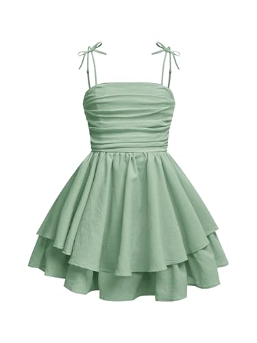 {"about_product": ["Material: Comfy and soft material, it is breathable and skin-friendly to wear", "Design: Tie shoulder, ruched, sleeveless, spaghetti strap, high waist, a line, ruffle hem, flared hem, mini length, girls dress", "Occasion: Cute dress for girls, easily pair with mary jane shoes, leather shoes, casual shoes and other items", "Match: Wonderful option for birthday party, family gathering, trip, vacation, holiday, picnic and other occasions", "Please kindly check the size chart in the production description before ordering. (The production description is clothes size, not body size )"], "product_description": null, "product_information": {"ASIN": "B0DTK6JPBV", "Department": "girls", "Customer Reviews": "4.3 4.3 out of 5 stars \n\n (78)", "Best Sellers Rank": "#40,202 in Clothing, Shoes & Jewelry (See Top 100 in Clothing, Shoes & Jewelry) #94 in Girls' Casual Dresses", "Date First Available": "January 21, 2025"}, "product_details": {"Origin": "Imported", "Fabric type": "97% Polyester,3% Elastane", "Closure type": "Pull On", "Care instructions": "Machine Wash"}}
