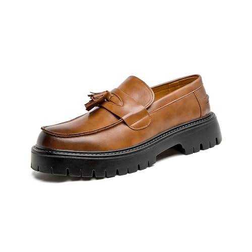 {"about_product": ["Classic business design: glossy black patent leather, with low-key tassel decoration, perfectly blending formal and casual styles, easily adapting to workplace commuting, business meetings and daily travel scenes, showing elegant taste.", "Convenient to put on and take off: built-in thick-soled platform design, invisible height increase of 3-5cm, with a slip-on lazy shoe structure, no need to tie, time-saving and labor-saving to put on and take off, taking into account comfort and practicality, no burden to walk all day.", "Anti-slip and wear-resistant sole: customized concave and convex rubber outsole, strong grip, anti-slip and wear-resistant, no fear of rainy days or smooth ground, ensuring walking safety, suitable for long-term standing or light outdoor activities.", "Detail texture: classic round-toed shoe shape accommodates foot shape, combined with retro \"Penny loafers\" elements, tassel embellishment adds exquisiteness, highlights low-key luxury, and easily enhances the overall style.", "Easy-care features: High-quality patent leather fabric is waterproof and stain-resistant, and can be refreshed with daily wipes; the breathable soft padding inside fits the shape of the foot and will not make you tired after wearing it for a long time. It is an ideal shoe for urban men who pursue quality and efficiency."], "product_description": null, "product_information": {"ASIN": "B0DY87CHXX", "Department": "mens", "Manufacturer": "ZGHNP", "Customer Reviews": "4.3 4.3 out of 5 stars \n\n (46)", "Product Warranty": "For warranty information about this product, please click here", "Best Sellers Rank": "#91,100 in Clothing, Shoes & Jewelry (See Top 100 in Clothing, Shoes & Jewelry) #215 in Men's Loafers & Slip-Ons", "Item model number": "0224nanlsx", "Package Dimensions": "3 x 2 x 1 inches; 1.6 ounces", "Date First Available": "February 24, 2025"}, "product_details": {"Closure type": "Pull-On", "Sole material": "Rubber", "Inner material": "Breathable Soft Padding", "Outer material": "Faux Leather"}}