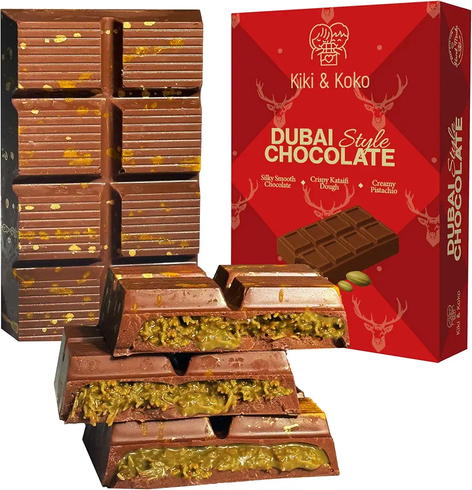 Dubai Chocolate Pistachio Bar 6.5oz - Handmade Kunafa Baklava-Inspired Dessert with European Milk Chocolate and Pistachio Cream