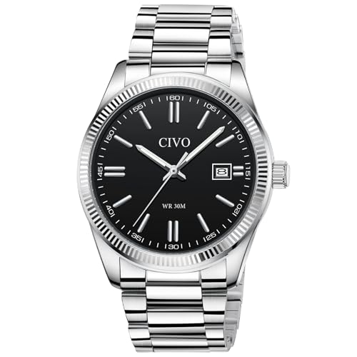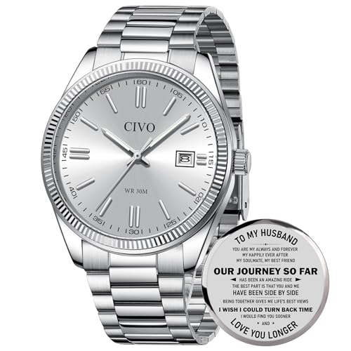 {"about_product": ["Classic Silver Men’s Watch: The stainless steel analog quartz watch features a elegant, minimalist design. The Luminous hands ensure easy visibility in the dark, while the handy date display keeps you on schedule. A reliable companion for everyday wear.", "Durable Stainless Steel Strap: Crafted from high-quality stainless steel, the strap is built to last and resists corrosion. An easy-to-use adjustment tool allows for a customized fit, ensuring maximum comfort for all-day wear.", "Precision Japanese Quartz Movement: Powered by a precise Japanese quartz movement, the watch delivers accurate timekeeping and long-lasting durability. With 3 ATM water resistance, it withstands splashes and light rain, making it perfect for daily use—though not suitable for swimming or diving.", "Waterproof Design for Daily Wear: Designed to withstand water pressure up to 100 feet, the stainless steel watch is perfect for daily activities. It handles splashes, brief immersion, and everyday water exposure with ease, making it a versatile and reliable accessory.", "Ideal Gift for Men: The analog watch is an excellent choice for your husband, father, son, brother, or boyfriend, it’s a versatile gift for birthdays, anniversaries, Valentine’s Day, Christmas, or any special occasion, it’s a timeless accessory that suits professionals, students, and watch enthusiasts alike."], "product_description": "CIVO Analog Mens Watches Silver: Wrist Watches with Date Easy to Read - Dress Stainless Steel Watch for Men Gifts for Husband Father at Birthday Anniversary white elephant gifts", "product_information": {"ASIN": "B0F244SBSF", "Batteries": "1 Unknown batteries required. (included)", "Department": "mens", "Manufacturer": "CIVO", "Customer Reviews": "4.2 4.2 out of 5 stars \n\n (663)", "Product Warranty": "For warranty information about this product, please click here", "Best Sellers Rank": "#10,287 in Clothing, Shoes & Jewelry (See Top 100 in Clothing, Shoes & Jewelry) #32 in Men's Wrist Watches", "Item model number": "8349", "Package Dimensions": "12.32 x 3.86 x 0.67 inches; 3.84 ounces", "Date First Available": "March 21, 2025"}, "product_details": {"Clasp type": "Hook Buckle", "Item type name": "Casual Watch"}}
