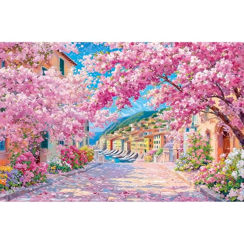 1000 Piece Puzzles for Adults, Sakura Blossom Street 1000 Puzzle for Adults, Clearance Impossible Challenge Art Jigsaw Puzzles, for Gift Birthday Party Games Family, 27.5 * 19.7 Inch Dust Free Puzzle