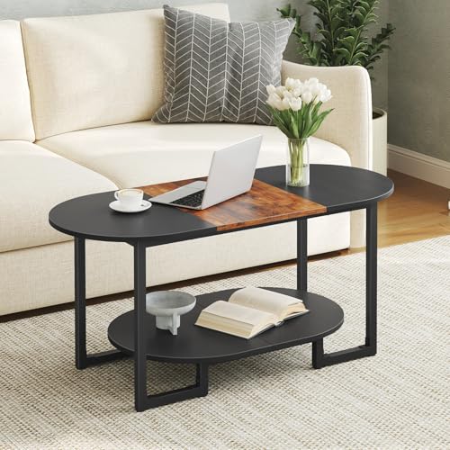 {"about_product": ["Multi-Functional Coffee Table: This coffee table features an oval-shaped design suitable for both balcony parties and daily living room use, enhancing your space with its natural, rustic charm while allowing you to enjoy serene moments anytime, anywhere", "Convenient Storage: Featuring a double-layer layout with practical storage space, this for living room easily organizes books, magazines, and remote controls. Its open shelving displays your essentials clearly, keeping your living area tidy and organized", "Safety and Aesthetic Appeal: With thoughtfully rounded corners, this oval coffee table ensures safe usage while showcasing elegant curves. It serves as a visual focal point in your living room, meeting both safety needs and aesthetic tastes seamlessly", "Built to Last: Crafted with a robust metal frame and engineered wood, this cocktail tea table offers enduring durability. Even with long-term use, it maintains a refined texture and elegant finish, balancing functionality and beauty as a timeless addition", "Easy Assembly: Thanks to its straightforward structure, clearly labeled parts, necessary assembly tools, and easy-to-follow instructions, setting up the small coffee table is effortless. Experience convenience and enjoy ready-to-use comfort in your home"], "product_description": null, "product_information": {"ASIN": "B0F3J6PW1C", "Size": "35.4\"L x 15.7\"W x 17.3\"H", "Color": "Rustic Brown", "Shape": "Oval", "Base Type": "Leg", "Leg Style": "Straight Leg", "Brand Name": "HOOBRO", "Model Name": "Coffee Table", "Style Name": "Industrial", "Item Height": "44 centimeters", "Item Weight": "7 Kilograms", "Manufacturer": "HOOBRO", "Model Number": "BF09KF01 Coffee Table", "Material Type": "Engineered Wood, Metal", "Number of Items": "1", "Best Sellers Rank": "#114,181 in Home & Kitchen (See Top 100 in Home & Kitchen) #62 in Coffee Tables", "Top Material Type": "Engineered Wood", "Frame Material Type": "Metal", "Included Components": "1 x Coffee Table; 1 x Accessory Kit; 1 x Instructions", "Item Dimensions D x W x H": "15.7\"D x 35.4\"W x 17.3\"H"}, "product_details": {"Brand": "HOOBRO", "Color": "Rustic Brown", "Item Weight": "7 Kilograms", "Frame Material": "Metal", "Product Dimensions": "15.7"D x 35.4"W x 17.3"H"}}