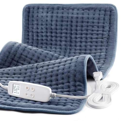 {"about_product": ["Experience Full-body Warmth and Relaxation. Perfectly sized at 33\"x17\", it comfortably covers large areas like your shoulders, back, abdomen, and legs. It heats up quickly to provide consistent, comforting warmth that helps dispel chill, and promote a general sense of well-being and relaxation wherever you need it most. An ideal companion for cozying up at home, in the office, or whenever you seek comforting heat", "Ultra Soft & Consistent Heat- Exclusive ultra-soft flannel material feels comfortable on the skin and conforms more closely to the body's curves for added warmth. 130W power and 2025 upgraded built-in heating wire technology with denser heating points ensure that every corner of the blanket is heated quickly and evenly. (The perfect Voltage is 110V-120V)", "Warmer & Safer Heating Pad- Fast heating with 6 levels of temperature adjustment which range from 100℉ to 150℉, experience a temperature better suited to you. The upgraded controller has various safety certifications to ensure that the temperature is within the safe range and avoid accidents caused by overheating, providing a longer service life. (Do not fold when use to avoid over heat)", "Timed Heating for Worry-free Use- Heating Pad controller equip auto shut-off timer, which will auto turn off after 0.5H/ 1H/ 1.5H/ 2H/ 2.5H/ 3H of continuous use to save energy and meet different needs. Using the controller to set the heat & time with a large backlight LED screen for visibility in the dark. The extended 9-foot cord makes it more convenient to enjoy warmth in all areas of your home", "Easy Care and Storage- The well-finished heating pad is machine washable and dryer safe, making it easy to keep clean and use for years. Please detach the controller and cool it down before washing. Please dry the heating pad completely after washing it before turning on. Also, you can roll up the controller in heating pad and secure in place with elastic straps for easy storage and carry it everywhere"], "product_description": null, "product_information": {"ASIN": "B0F3W5JF4W", "Manufacturer": "VAAGHANM", "Customer Reviews": "4.5 4.5 out of 5 stars \n\n (6,480)", "Best Sellers Rank": "#1,419 in Health & Household (See Top 100 in Health & Household) #10 in Heating Pads", "Item model number": "NA-H1223C", "Package Dimensions": "16.14 x 4.09 x 4.09 inches; 1.76 Pounds", "Date First Available": "April 8, 2025"}, "product_details": {"Brand": "VAAGHANM", "Color": "Grey Blue", "Material": "Plastic & Flannel", "Special Feature": "Automatic Shut Off, Overheat Protection, Portable, Timer", "Number of settings": "6"}}