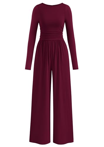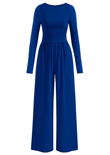 {"about_product": ["Size Tips: XS=US 0-2, S=US 4-6, M=US 8-10, L=US 12-14, XL=US 16, 2XL=US 20.Our long sleeve jumpsuits for women casual are made of soft, lightweight, skin-friendly, strechy material, long sleeve tops with soft lining, no see-through, ideal for all-day wear", "Features: Wide leg jumpsuits for women with ruched, high waist, show you more elegance.Jumpsuits for women dressy; casual jumpsuits for women; long rompers for women; casual loose overalls; petite jumpsuits for women; formal jumpsuits for women; fall fashion overalls", "Design: Unique waist ruched; wide leg jumpsuits very stretchy where it needs to be and is very flattering.Classic boat neck; back button closure makes one piece jumpsuits for women easy to put on and take off.Rompers jumpsuits with pockets; fall outfits for women 2025", "Versatility Match: women's jumpsuits perfect for fall 2025 with boots, sneakers, cardigan, fitted jacket or blazer, handbag; or dress it up with heels and jewelries for elegan look; belt at the highest point of your waist to create longer-looking legs and define your silhouette", "Occasion: Womens rompers and jumpsuits can be worn as business casual outfits; work meeting; travel vacation outfits; concert; jumpers and rompers for fall outfit; homecoming events; brunch; shopping; trips; wedding jumpsuits; maternity jumpsuit"], "product_description": null, "product_information": {"ASIN": "B0F4WYMG97", "Department": "Women", "Customer Reviews": "4.2 4.2 out of 5 stars \n\n (172)", "Product Warranty": "For warranty information about this product, please click here", "Best Sellers Rank": "#26,307 in Clothing, Shoes & Jewelry (See Top 100 in Clothing, Shoes & Jewelry) #45 in Women's Jumpsuits", "Date First Available": "September 1, 2025"}, "product_details": {"Origin": "Imported", "Fabric type": "Shell: 63%Polyester, 30%Viscose, 7%Elastane; Lining: 95%Polyamide, 5%Elastane", "Care instructions": "Machine Wash"}}