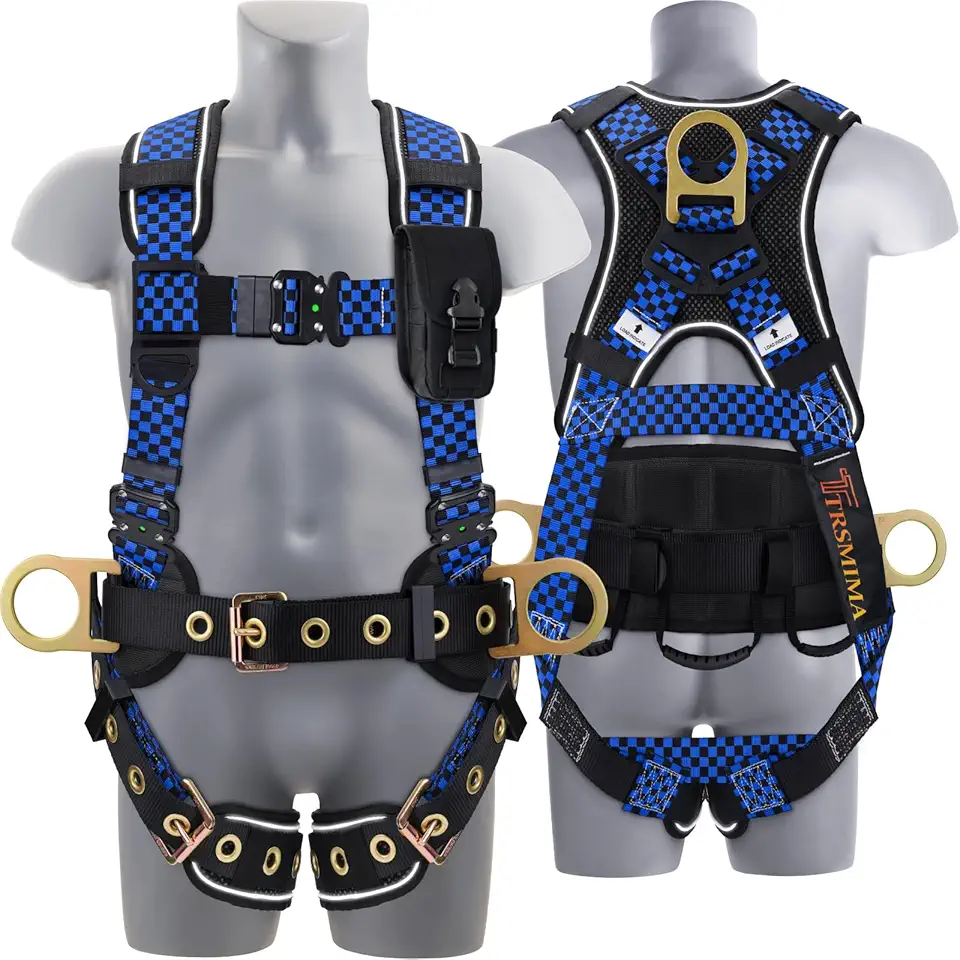 TRSMIMA Safety Harness Fall Protection - Datachable Pad Roofing Fall Arrest Safety Harness Construction Phone Pocket Reflective Strap Friendly Night Work ANSI
