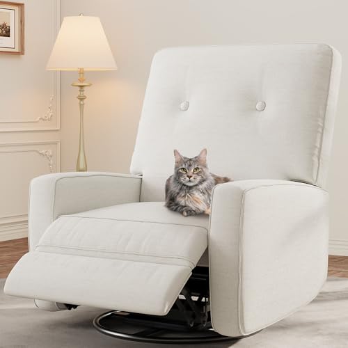 {"about_product": ["Compact & Cozy: Designed at 33.9\"D x 39.4\"W x 40.6\"H, this recliner chair for adults is perfect for small spaces. Use it as a nursery chair, side chair, or reading chair in living rooms, bedrooms, or apartments for versatile comfort", "Recline Your Way: Enjoy personalized relaxation with an adjustable backrest (90°-150°) and matching footrest. This reclining chair lets you sit upright, lounge back, or fully recline—ideal as a nursery glider or comfy chair for bedrooms", "Swivel & Soothe: Effortlessly rotate with the swivel chair's smooth 360° motion or soothe with gentle rocking. Perfect as a nursery rocker, reading chair, or as stylish swivel glider recliner side chairs for your living room", "Wrapped in Comfort: Wrapped in soft linen fabric and filled with high-density foam, this glider rocking chair offers instant comfort. The breathable upholstery and plush seat make it the perfect nursing chair or comfy chair for relaxing moments", "Sturdy Build, Easy Assembly: The heavy-duty metal base ensures stability and durability for everyday use. With a simple 2-step setup—just attach the backrest to the seat, no tools needed—your new recliner glider is ready in minutes"], "product_description": "Gently rock and swivel your way to total relaxation with this dreamy nursery chair - whether you're soothing a little one, enjoying a good book, or simply unwinding after a long day, its linen comfort and customizable reclining positions create the perfect cozy nest for your precious moments. \nHighlights at a glance:Versatile 360° swivel motion with gentle rocking for comfortAdjustable reclining backrest and footrest for personalized relaxationBreathable linen upholstery with high-density foam provides all-day comfortSpace-saving design ideal for nurseries, bedrooms and small living areasHeavy-duty metal base offers exceptional stability and smooth movementHassle-free 2-step assembly - no tools requiredSuitable for nursing mothers, book lovers and anyone wanting cozy relaxation\nSpecification:Weight capacity: 350 lbsSize: 33.9\"D x 39.4\"W x 40.6\"HColor: beige / green / grey\nFriendly note:Ship in two boxes; expect separate arrivals. Be patient during delivery.To change reclining positions, gently lean back while keeping your feet on the footrest. Avoid sudden movements when adjusting.Spot clean the linen upholstery with mild detergent.Always supervise children around the chair. Ensure little fingers are clear when adjusting positions.\nPacking list:1x Recliner chair1x Hardware bag1x Assembly guide", "product_information": {"UPC": "199414394567", "ASIN": "B0F9YBM7W3", "Size": "Oversized", "Brand": "IDEALHOUSE", "Color": "Beige-linen", "Shape": "Rectangular", "Pattern": "Solid", "Leg Style": "Straight Leg", "Back Style": "Continuous Back", "Model Name": "IDH250527-333V", "Seat Depth": "23.6 inches", "Unit Count": "1.0 Count", "Form Factor": "Recliner", "Item Weight": "104.3 pounds", "Manufacturer": "IDEALHOUSE", "Fill Material": "Foam", "Best Sellers Rank": "#503,382 in Home & Kitchen (See Top 100 in Home & Kitchen) #799 in Living Room Chairs", "Item model number": "IDH250527-BG333V-5V", "Product Dimensions": "33.9\"D x 39.4\"W x 40.6\"H", "Included Components": "Cushion", "Date First Available": "May 27, 2025", "Indoor/Outdoor Usage": "Indoor", "Age Range (Description)": "Adult", "Reclining Position Count": "3", "Assembly Instructions Description": "Easy, 2-step assembly instructions provided"}, "product_details": {"Size": "Oversized", "Brand": "IDEALHOUSE", "Color": "Beige-linen", "Material": "Metal, Linen", "Product Dimensions": "33.9"D x 39.4"W x 40.6"H"}}