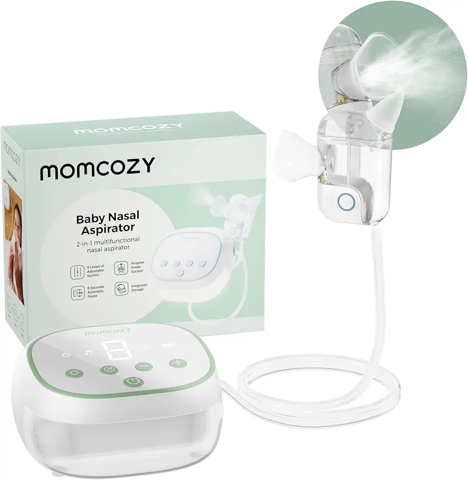 Momcozy BreezyClear Pro™ Nasal Aspirator for Baby, Hospital-Grade 75 kPa Nose Sucker with 9 Adjustable Suction Levels, Electric Nose Cleaner for Toddler, Light & Music Soothing