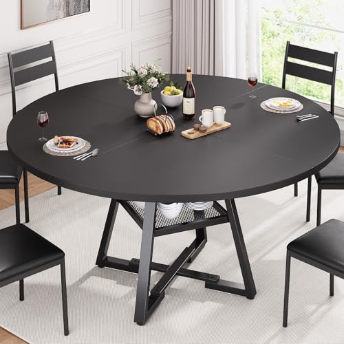 {"about_product": ["IDEAL for FAMILIES of 4-6: (Package Includes one Table) The 42-inch round dining table offers generous space for 4 to 6 people, providing it a space for kitchens and dining rooms. Whether for intimate family meals or lively social gatherings, it is the centerpiece for family gatherings.", "EXTRA LARGE STORAGE SPACE: A Thoughtfully designed storage shelf is for organizing tableware and kitchen essentials, keeping them easily within reach. It helps maintain a clean, clutter tabletop while providing convenient access to everything you need. Round dining table maximizes the usable area of the dining table, a 42-inch round dining table for 4, ideal for family meals and gatherings.", "STRONG & Long-lasting BUILD: The sturdy cross-shaped base, reinforced 25mm metal legs, carbon steel frame ensure excellent stability and load-bearing strength. The thickened MDF tabletop is heat-resistant, scratch-resistant, and waterproof. Its sleek design, clean lines, and textured finish add a modern, minimalist touch that complements any home décor style.", "INDUSTRIAL STYLE DESIGN: Add rustic charm to your home with its wood tabletop and cross base, creating a warm and inviting dining space. The blend of traditional farmhouse and modern design, paired with a wood grain finish, makes it a versatile fit for various home styles. Ideal for kitchens or dining rooms, it saves space while enhancing the room’s aesthetic.", "SPACE SAVING DESIGN: The cross-shaped base provides ample space and legroom for diners, while allowing stools to be easily tucked underneath. Its compact design makes this an ideal choice for kitchen&dining room, and apartments.", "EASY ASSEMBLY: Includes clear instructions, numbered parts, and pre-drilled holes for quick and accurate setup. We're dedicated to excellent service-to email us with any questions, and we'll respond within 24 hours."], "product_description": null, "product_information": {"ASIN": "B0FCF9YGY2", "Size": "42In", "Color": "Black", "Shape": "Round", "Base Type": "Leg", "Top Color": "Black", "Brand Name": "Jocoevol", "Model Name": "round dining table for 4", "Item Height": "42 inches", "Item Weight": "37.4 Pounds", "Manufacturer": "Jocoevol", "Model Number": "round dining table", "Table Design": "Dining Table", "Material Type": "Engineered Wood", "Item Type Name": "Round Dining Table for 4,Kitchen Dining Room Circle Dinner Pedestal Table,Space Saving Wood Kitchen & Dining Room Furniture", "Extended Length": "42 Inches", "Handle Material": "Engineered Wood", "Number of Items": "1", "Furniture Finish": "Black, Wood Grain", "Seating Capacity": "6", "Best Sellers Rank": "#21,816 in Home & Kitchen (See Top 100 in Home & Kitchen) #1 in Kitchen & Dining Room Tables", "Top Material Type": "Engineered Wood", "Is Stain Resistant": "No", "Tabletop Thickness": "25 Millimeters", "Frame Material Type": "Metal", "Included Components": "Accessory Bag", "Indoor Outdoor Usage": "Indoor", "Is the item resizable?": "No", "Item Dimensions D x W x H": "42\"D x 31\"W x 42\"H", "Unextended Seating Capacity": "6", "Tools Recommended For Assembly": "Screw Driver, Wrench"}, "product_details": {"Brand": "Jocoevol", "Color": "Black", "Item Weight": "37.4 Pounds", "Frame Material": "Metal", "Product Dimensions": "42"D x 31"W x 42"H"}}