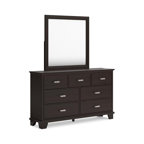 {"about_product": ["7-DRAWER DRESSER WITH MIRROR: Satisfying your taste for vintage inspiration, this dresser is elegant without looking fussy. Drawers keep your wardrobe organized in style, while a hidden pull-out tray puts your small valuables out of sight", "HANDSOMELY MADE: Made of veneers, wood and engineered wood. Hand-finished. 7 drawers with dovetail construction. Top drawers with felt bottoms; bottom drawers with cedar bottoms. Pull-out tray behind top middle drawer", "ASHLEY DRESSERS: Your dream bedroom dresser or chest of drawers is closer than you think. Ashley has dressers & chests in a variety of finishes, from white to black to colorful, to meet your needs", "DIMENSIONS: Measures 65.63\" W x 18.75\" D x 76.38\" H. Includes dresser and mirror. Mirror attaches to back of dresser", "ASSEMBLY REQUIRED: Easy-to-follow instructions and hardware included. Additional tools (not included) may be necessary"], "product_description": "The quality craftsmanship is clear to see. The classic design elements—including inlaid panels, antiqued hardware and bun feet—are easy to love. Satisfying your taste for vintage inspiration, the Porter dresser is elegant, without looking fussy. Seven roomy drawers keep your wardrobe organized in style. Beveled mirror frame beautifully echoes the dresser’s rustic finish.", "product_information": {"ASIN": "B0FCY4GBPR", "Size": "18.8\"D x 65.6\"W x 76.4\"H (7 Drawers)", "Brand": "Signature Design by Ashley", "Color": "Dark Brown", "Room Type": "Bedroom", "Model Name": "Porter Dresser and Mirror", "Item Weight": "257 pounds", "Manufacturer": "Ashley Furniture Industries", "Assembly Required": "Yes", "Best Sellers Rank": "#720,124 in Home & Kitchen (See Top 100 in Home & Kitchen) #124 in Bedroom Sets", "Item model number": "B697B1", "Product Dimensions": "18.75\"D x 65.63\"W x 76.38\"H", "Date First Available": "June 12, 2025", "Product Care Instructions": "Wipe with Damp Cloth, Wipe with Dry Cloth"}, "product_details": {"Brand": "Signature Design by Ashley", "Material": "Engineered Wood, Glass, Wood", "Finish Type": "Polished", "Number of Drawers": "7", "Product Dimensions": "18.75"D x 65.63"W x 76.38"H"}}