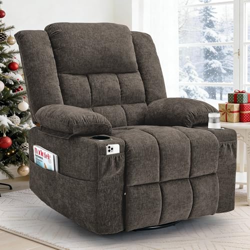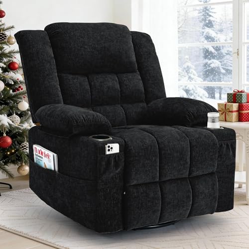 {"about_product": ["Rotating Rocking Recliner: The Korser recliner chair is a functional and interesting rocking recliner that can rotate 360°, allowing you to adjust the angle without getting up. Whether you are enjoying the scenery outside the window or chatting with your family, you can switch the perspective by gently turning it. At the same time, it is equipped with a 30° rocking function. This just-right soothing rocking also allows your body and mind to relax better.", "Massage and Heating: The rocking chair from Korser is your first choice for relaxation. It has 8 vibration massage points, targeting the back, waist, thighs, and legs, which can achieve targeted customized massage to meet your personalized needs. At the same time, the recliner is supplemented with a soothing heating function at the waist to promote blood circulation and enhance the overall experience. The combination of massage and heating can soothe your fatigue of the day.", "High-Quality Materials: The materials used in the swivel rocker recliner take both beauty and comfort into consideration. The exterior is made of high-quality and comfortable chenille fabric, which is soft and skin-friendly. There are also multiple colors to choose from to meet different color preferences. The internal materials have undergone several load-bearing endurance tests and can bear a maximum load of 385 pounds, providing lasting stability for your relaxing experience.", "Convenient Design: Unlike other recliners with only two side pockets, this glider rocker recliner from Korser is designed with two front pockets and two side pockets, which not only increases the storage capacity but also makes it more convenient to store and sort items of different sizes. At the same time, the cup holders on the two armrests can hold both cold and hot drinks steadily, and you can reach out and take a cup to drink water, which is more convenient.", "Uniqueness: Special Note: Unlike most swivel rocking recliners of the same size that are shipped in double boxes, our recliners have unique folding armrests that are shipped in a single box, so that your body can enjoy it more quickly. Each package is equipped with complete parts and clear instructions. Of course, if you have any questions during the installation process, please feel free to consult our professional after-sales team."], "product_description": null, "product_information": {"ASIN": "B0FDWKSJD8", "Brand": "Korser", "Color": "Dark Grey", "Shape": "Square", "Pattern": "Solid", "Arm Style": "Rounded", "Leg Style": "wheels", "Room Type": "Bedroom, Living Room, Office, nursery room", "Back Style": "Pillow Back", "Seat Depth": "22.8 inches", "Form Factor": "Recliner", "Item Weight": "95 pounds", "Manufacturer": "Korser", "Fill Material": "Foam", "Best Sellers Rank": "#39,620 in Home & Kitchen (See Top 100 in Home & Kitchen) #26 in Living Room Chairs", "Item model number": "Gee-2016-DARE GREY", "Product Dimensions": "22.8\"D x 20.8\"W x 40.9\"H", "Date First Available": "June 20, 2025", "Indoor/Outdoor Usage": "Indoor", "Age Range (Description)": "Adult", "Reclining Position Count": "2", "Maximum Weight Recommendation": "385 Pounds", "Assembly Instructions Description": "The product requires assembly. Instructions are included in the package."}, "product_details": {"Brand": "Korser", "Color": "Dark Grey", "Material": "Chenille", "Item Weight": "95 Pounds", "Product Dimensions": "22.8"D x 20.8"W x 40.9"H"}}