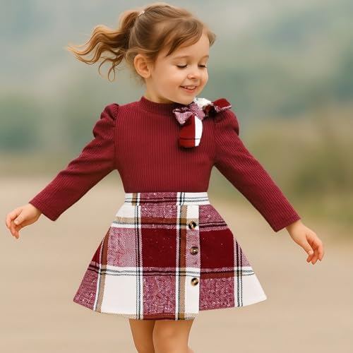 {"about_product": ["MATERIAL: Toddler girl shirt sweater top is made of cotton and polyester, bottom skirt is made of cotton blend and polyester, soft, breathble, and comfortable, sweet toddler baby girl 2 piece skirt set, cute baby girl clothes.", "Design: Kids Little girl spring fall winter skirt set,knitted cotton long sleeve solid color top, button mini skirt with elastic waist , winter fashion warm toddler girls clothes outfits.", "AGE: Toddler girl winter clothes suitable for baby girl clothes 2t, 3t toddler girl fall clothes,4t toddler girl outfits, 5t girl clothes, 6y girl clothes, toddler girl fall clothes, baby girl winter clothes, toddler girl winter outfit.", "OCCASION: The toddler dress suit is suitable for leisure daily wear, such as shopping, party, club, birthday, holiday, travel, photo shoot, Halloween, Thanksgiving, Christmas gift, New year, funeral, or home, formal accation etc.", "Package included: 1 x Long Sleeve Sweatshirt Tops +1 x Plaid Mini Skirt."], "product_description": null, "product_information": {"ASIN": "B0FF3W345P", "Department": "baby-girls", "Customer Reviews": "4.6 4.6 out of 5 stars \n\n (222)", "Best Sellers Rank": "#3,120 in Clothing, Shoes & Jewelry (See Top 100 in Clothing, Shoes & Jewelry) #1 in Baby Girls' Skirt Sets", "Package Dimensions": "3.3 x 3.3 x 0.4 inches; 4.23 ounces", "Date First Available": "June 21, 2025"}, "product_details": {"Origin": "Imported", "Fabric type": "Cotton blend", "Care instructions": "Machine Wash"}}