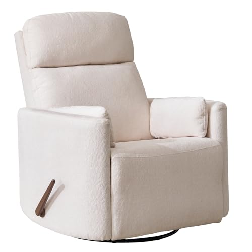 {"about_product": ["Massage and Heat: This massage rocking chair is equipped with an 8-point vibration massage system and 5 massage modes with 2 intensity levels, providing a customisable massage experience that targets your back and waist. The soothing lumbar heating function alleviates discomfort, stress and fatigue, providing full-body relaxation. The ergonomic design of this manual recliner chair ensures maximum comfort and convenience.", "Adjustable Headrest: This swivel rocker recliner chair for adults has an adjustable headrest. It can be manually adjusted to a variety of angles and its comfortable design helps to reduce pressure on the neck and shoulders. This makes it easy to adjust to a comfortable position, allowing you to watch TV or lean back without straining your neck or head. It provides personalised comfort.", "Oversized Swivel Rocker Recliner: Product size: 38.7\" (d) x 38.5\" (w) x 43\" (h), Seat size: 26\" (w) x 22\" (d), Weight capacity: 350 lbs. This glider recliner offers a reclining angle of 90°–145°. Simply press the button lightly to relax, read or sleep. It also features a 270° swivel and 30° rocking for maximum comfort and convenience, whether you're relaxing or soothing your baby to sleep. Metal base and solid wood construction for durability.", "Comfortable armrest design: This armchair comes with two removable pillows that are not only aesthetically pleasing, but also provide comfortable support for complete relaxation. You can cuddle up and sleep on it, and the two pillows can also be used as lumbar pillows while you read, providing extra support and comfort for your back, reducing muscle fatigue and ensuring a comfortable sitting experience. The modern 'arc' armrests are fashionable and stylish, and will keep your space looking warm and inviting.", "Easy Assembly & Service: You will receive two boxes, but they may not all arrive at the same time, so please wait until you have received all the packages before starting the installation, which can be easily assembled in a few minutes. We also offer a free replacement for any faulty, damaged or missing parts and a 2 year warranty. Please contact us if you have any questions about your purchase."], "product_description": null, "product_information": {"ASIN": "B0FJLXHQCN", "Size": "Swivel Rocker Recliner", "Brand": "Rhevoy", "Color": "White", "Shape": "L-Shape", "Style": "Modern", "Pattern": "Solid", "Tilting": "Yes", "Arm Style": "Arc", "Room Type": "Nursery", "Back Style": "Tufted Back", "Model Name": "MR020", "Seat Depth": "22 inches", "Form Factor": "Recliner", "Is Foldable": "No", "Item Weight": "100 pounds", "Seat Height": "20.4 Inches", "Seat Length": "26 Inches", "Manufacturer": "Rhevoy", "Cushion Style": "Padded", "Special Feature": "Arm Rest, Ergonomic, Head Support, Swivel", "Best Sellers Rank": "#184,593 in Home & Kitchen (See Top 100 in Home & Kitchen) #210 in Living Room Chairs", "Item model number": "MR020", "Product Dimensions": "38.7\"D x 38.5\"W x 43\"H", "Included Components": "Chair, 2 Pillows", "Date First Available": "July 23, 2025", "Indoor/Outdoor Usage": "Indoor", "Age Range (Description)": "Adult", "Furniture base movement": "Swivel", "Reclining Position Count": "90-145 degrees", "Recommended Uses For Product": "Nursery, Reading, TV Watching, Sleeping, Relaxing", "Included Throw Pillow Quantity": "2"}, "product_details": {"Size": "Swivel Rocker Recliner", "Brand": "Rhevoy", "Color": "White", "Material": "Metal", "Product Dimensions": "38.7"D x 38.5"W x 43"H"}}