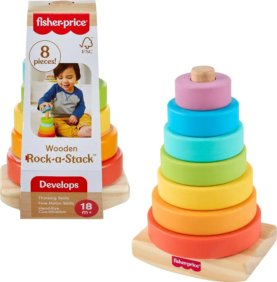 Fisher-Price Fisher-Price Wood Toddler Toy Rock-a-Stack, 8-Piece Wooden Ring Stacking Activity for Fine Motor Skill Development Kids Ages 18+ Months