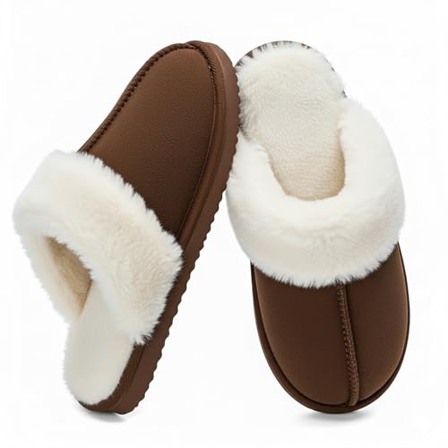 {"about_product": ["Comfy & Warm: The fuzzy slippers are lined with a wool-like faux-fur lining, along with breathable faux-suede and a plush collar to keep your feet warm and cozy all day", "Ultralight EVA Outsole & Supportive Insole:The ultra-lightweight EVA outsole with its wave-like tread pattern ensures stable traction and reliable grip on any surface. Featuring a supportive insole combination of synthetic wool and memory foam, this design provides both warmth and cushioning for enhanced comfort. This cozy winter slipper is engineered to effectively reduce foot fatigue during extended periods of standing or walking", "Versatile & Stylish:The classic design with stitched detailing effortlessly complements jeans, leggings, or casual loungewear, making these slip-resistant slippers an ideal choice for both indoor relaxation and short outdoor adventures", "Warm Tips: For a looser fit, wide feet, or thick socks, PLEASE HALF SIZE UP. These slippers may normally feel a bit tight at first. Crafted from faux suede and soft plush lining, they will stretch out for more roomy and comfortable after long wear", "Ultimate Gift for Women: Seamlessly blending style, comfort, and practicality, this autumn/winter footwear collection delivers important versatility for the season, making it a must-have gift choice that thoughtfully combines fashion sensibility with everyday functionality"], "product_description": "", "product_information": {"ASIN": "B0FKSJF5R6", "Department": "womens", "Customer Reviews": "4.6 4.6 out of 5 stars \n\n (881)", "Product Warranty": "For warranty information about this product, please click here", "Best Sellers Rank": "#327 in Clothing, Shoes & Jewelry (See Top 100 in Clothing, Shoes & Jewelry) #22 in Women's Slippers", "Date First Available": "August 1, 2025"}, "product_details": {"Origin": "Imported", "Inner material": "Synthetic Wool, Memory Foam", "Fur description": "Dyed Faux Fur (Fur Origin: Not Specified)", "Water resistance level": "Not Water Resistant"}}