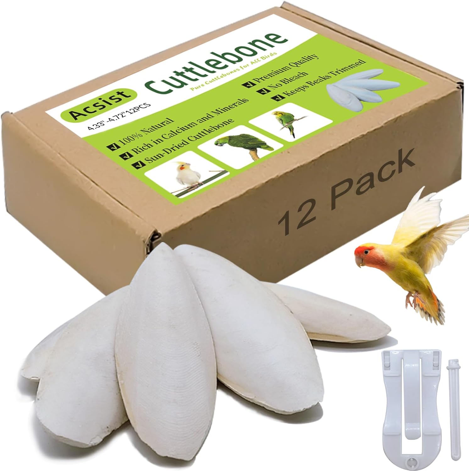{"about_product": ["【Package Includes】12 cuttlefish bones, 1 plastic cuttlefish bone clip, easy to use and store. Each length: approximately 4.3“-4.7”. Ample quantity can meet your pet birds' daily needs and provide them with minerals.", "【Premium Natural Material】Cuttlebone comes from cuttlefish, not cuttlebone powder. It's all natural, with no additives or bleaching. So, there might be some black spots, but don't worry, it's just natural. It's been desalted, so it won't harm your pet, so you can use it without stress.", "【Benefits to Birds】Bird cuttlebone is an important dietary supplement for birds, containing calcium and other minerals that birds need to help with bone formation and blood clotting, promoting overall bird health; in addition, cuttlefish bones are great for chewing on, with a rough texture promotes beak polishing, which birds can use to keep their beaks in optimal shape.", "【Easy to Enjoy】Comes with 1 plastic cuttlefish bone clip, designed for bird cages, can be easily fixed on the wire mesh. Pet birds can easily stand on it and peck the cuttlefish bone.", "【Suitable for All Birds】Cuttlefish bone is suitable for all birds, such as budgies, cockatiels, parakeets, finches, canaries, lovebirds, mynas, toucans, small peacock birds, African gray birds."], "product_description": null, "product_information": {"ASIN": "B0FNJVPZ8Q", "Size": "12 PCS,4.3\"-4.7\"", "Color": "White", "Brand Name": "Acsist", "Directions": "no", "Model Name": "Acsist 4.3\"-4.7\" Cuttlebone,12 Pcs", "Item Weight": "4 ounces", "Manufacturer": "Acsist", "Item model number": "AC194", "Included Components": "12pcs 4.3\"-4.7\" Natural Cuttlefish Bone 1 plastic cuttlefish bone clip", "Date First Available": "November 8, 2025", "Target Audience Keyword": "Birds", "Specific Uses for Product": "Bone Health", "Item Package Dimensions L x W x H": "3 x 2 x 2 inches"}, "product_details": {"ASIN": "B0FNJVPZ8Q", "Manufacturer": "Acsist", "Customer Reviews": "5.0 5.0 out of 5 stars \n\n (4)", "Best Sellers Rank": "#43,402 in Pet Supplies (See Top 100 in Pet Supplies) #81 in Bird Health Supplies", "Item model number": "AC194", "Package Dimensions": "3 x 2 x 2 inches; 4 ounces", "Date First Available": "November 8, 2025"}}