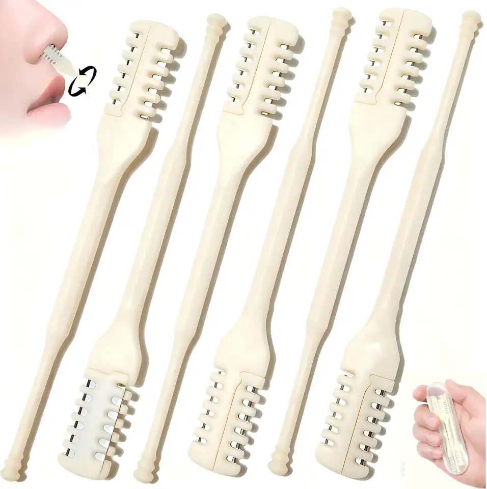 6PCS 2-in-1 Nose Hair Trimmer, Double-Sided Nose Hair Cutter Trimmer Upgrade, Portable 360 Degree Rotating Manual Nasal Hair Scissors for Women and Men, Recortadora De Pelo De Nariz