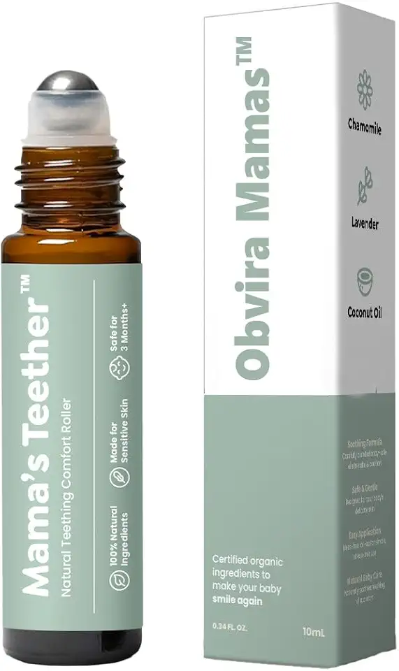 Obvira Mamas™ Teething Roller with Chamomile & Rose Oil, Gentle Massage Applicator for Soothing Infant Teething Pain