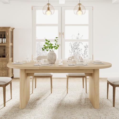 {"about_product": ["Rustic Farmhouse Style : This long wooden dining table features a smooth oval tabletop and two sturdy, rounded rectangular legs. Its simple yet stylish design is perfect for family meals in the kitchen or for entertaining guests in the living room. The sturdy wood construction adds both charm and reliable support, making the large dining table a great addition to any home decor.", "Elegant & Durable : Made from high-quality MDF and wood veneer, this kitchen table is built to last and brings a modern farmhouse look to your home. The tabletop and sturdy wood base can support up to 350 pounds. With its sealed surface, this dining table for 6 is water-resistant and easy to wipe clean, protecting against spills and scratches.", "Spacious Design : This 70.8-inch kitchen room table seats 6 to 8 people comfortably, making it perfect for family meals or hosting friends. With a large size of 70.87''W x 35.43''D x 29.92''H, there’s plenty of room for everyone to gather and enjoy a meal together. The height of the dining table for 8 is perfect for comfortable seating and dining, creating a great area for long dinners and good conversations.", "Versatile Use : This dinner table for 6 is perfect for many settings, from family gatherings at home to restaurants and office spaces for meeting with friends or colleagues. It works great as a dining table in the kitchen, or as a coffee or tea table on the balcony.", "Easy to Assemble : This dinner table for 8 comes with step-by-step instructions and all the hardware you need. Each part is labeled for easy assembly. This dining room table for 6 is especially suitable for DIY enthusiasts, allowing for a hassle-free installation process."], "product_description": null, "product_information": {"UPC": "199809663360", "ASIN": "B0FX2HHJB2", "Size": "70.87\" Long", "Color": "Brown", "Shape": "Oval", "Base Type": "Pedestal", "Top Color": "Brown", "Brand Name": "GarveeHome", "Model Name": "nRc3N-Mz2WcXrRYHjoTKIwjyiB08F", "Style Name": "Farmhouse", "Item Height": "30 inches", "Item Weight": "104.7 Pounds", "Manufacturer": "GarveeHome", "Model Number": "ZJH-PHK_36A9NBCQ-1020-Bq2T", "Table Design": "Dining Table", "Material Type": "Engineered Wood", "Item Type Name": "dining table", "Extended Length": "70.87 Inches", "Handle Material": "Engineered Wood", "Number of Items": "1", "Furniture Finish": "Wooden", "Seating Capacity": "8", "Best Sellers Rank": "#208,727 in Home & Kitchen (See Top 100 in Home & Kitchen) #47 in Kitchen & Dining Room Tables", "Top Material Type": "Engineered Wood", "Is Stain Resistant": "Yes", "Frame Material Type": "Engineered Wood", "Included Components": "Assembly Guide", "Indoor Outdoor Usage": "Indoor", "Is the item resizable?": "No", "Item Dimensions D x W x H": "70.87\"D x 35.43\"W x 30\"H", "Unextended Seating Capacity": "8", "Maximum Weight Recommendation": "350 Pounds"}, "product_details": {"Brand": "GarveeHome", "Item Weight": "104.7 Pounds", "Frame Material": "Engineered Wood", "Product Dimensions": "70.87"D x 35.43"W x 30"H", "Maximum Weight Recommendation": "350 Pounds"}}