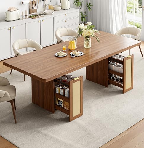 {"about_product": ["Spacious 78.7\" Wood Table with 2 Packages: Designed to comfortably seat 6-8 people, this extra-long wooden table features a thickened scratch-resistant tabletop (1.2\") and modern rustic charm. Perfect for family dinners, gatherings, or farmhouse-inspired kitchens and dining rooms", "Stylish Modern Farmhouse Design: Blending contemporary rattan/wicker accents with rustic woodgrain textures, this brown table showcases perfectly aligned grain patterns and a sleek wirebrush finish. Ideal for elevating modern farmhouse, cottage, or transitional interiors", "2 Hidden Adjustable Drawers: Two side-mounted hidden storage legs offer adjustable height settings for integrated storage space for dining essentials. Sturdy metal-reinforced construction ensures stability while maintaining a minimalist aesthetic", "Durable, Thickened Tabletop: Built with premium engineered wood and a waterproof surface, this heavy-duty table resists scratches, stains, and spills. The reinforced structure supports up to [1000 lbs], perfect for daily meals or festive occasions", "Easy Assembly & Versatile Use: Includes numbered parts, tools, and clear instructions for quick DIY setup. Use as a kitchen table, conference desk, or statement piece in living rooms—adapts seamlessly to homes or farmhouse-style spaces"], "product_description": null, "product_information": {"ASIN": "B0FZQVBYXK", "Base": "Wood", "Size": "39.9\"D x 78.7\"W x 29.5\"H", "Color": "Rustic White", "Shape": "Rectangular", "Base Type": "Pedestal", "Leg Style": "Straight Leg", "Room Type": "Dining Room, Dorm Room, Dormitory, Playroom, Study Room", "Top Color": "Brown", "Base Color": "Brown", "Brand Name": "LIKIMIO", "Model Name": "Dining Table", "Style Name": "Mid-Century Modern", "Desk Design": "Computer Desk, Writing Desk", "Drawer Type": "Hidden Drawer", "Item Height": "29.5 inches", "Item Weight": "140 Pounds", "Finish Types": "wood", "Manufacturer": "Likimio", "Model Number": "HK-CZ-N02", "Mounting Type": "Freestanding", "Product Grade": "new", "Item Type Name": "dining table", "Storage Options": "2 hidden adjustable drawers", "Furniture Finish": "Wood", "Is Customizable?": "No", "Best Sellers Rank": "#323,252 in Home & Kitchen (See Top 100 in Home & Kitchen) #114 in Kitchen & Dining Room Tables", "Number of Drawers": "2", "Required Assembly": "Yes", "Top Material Type": "Engineered Wood", "Tabletop Thickness": "1.2 Inches", "Additional Features": "Adjustable Shelf, Heavy Duty, Space Saving", "Included Components": "Dining Table", "Furniture Leg Material": "Wood", "Item Dimensions D x W x H": "39.3\"D x 78.7\"W x 29.5\"H", "Product Care Instructions": "Wipe with Dry Cloth", "Includes All Assembly Tools": "Yes", "Recommended Uses For Product": "Dining, Meeting, Reading, Writing", "Maximum Weight Recommendation": "1000 Pounds", "Working Surface Diagonal Length": "87.4 Inches"}, "product_details": {"Brand": "LIKIMIO", "Color": "Rustic White", "Shape": "Rectangular", "Style": "Mid-Century Modern", "Desk design": "Computer Desk, Writing Desk", "Finish Type": "wood", "Base Material": "Wood", "Special Feature": "Adjustable Shelf, Heavy Duty, Space Saving", "Top Material Type": "Engineered Wood", "Product Dimensions": "39.3"D x 78.7"W x 29.5"H"}}