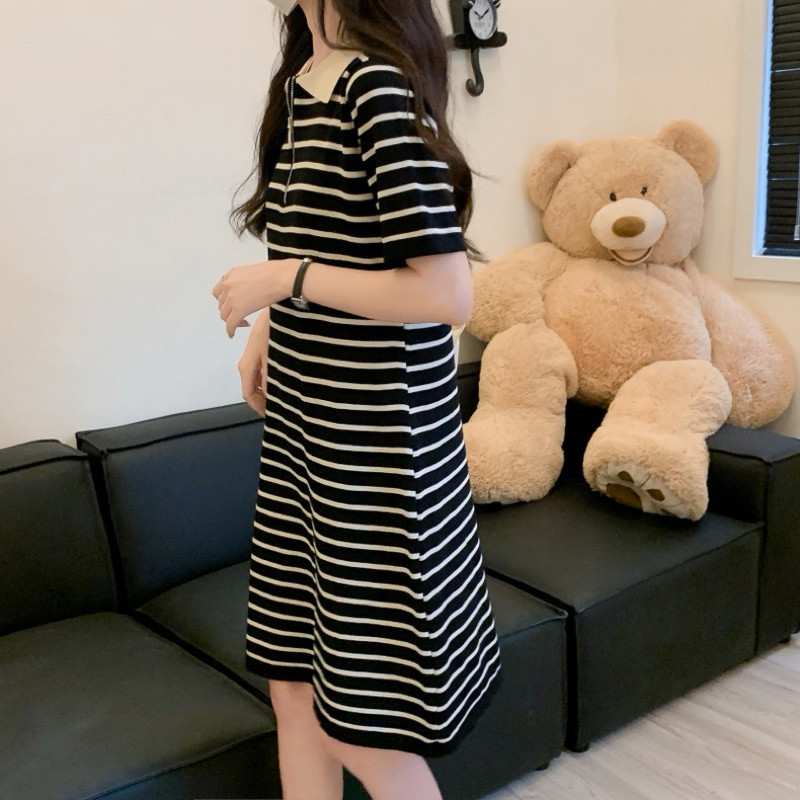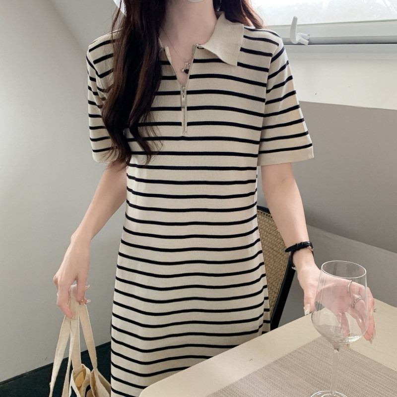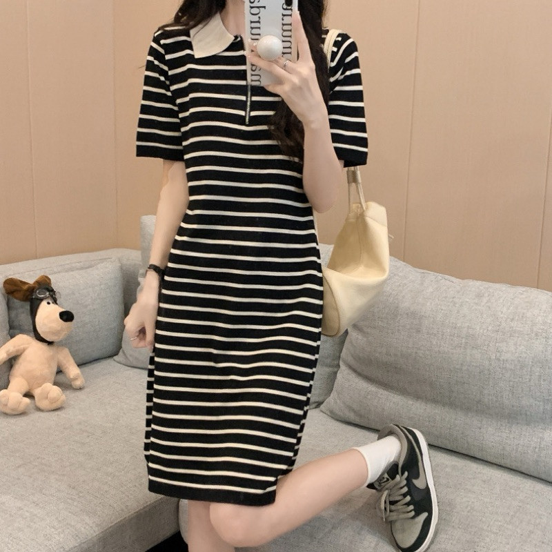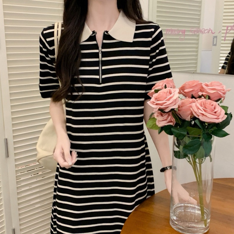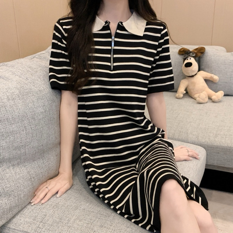 baao Korean Knitted Striped Polo Dress w/front zipper