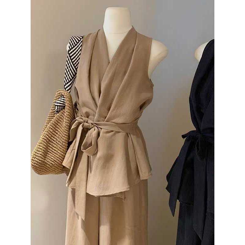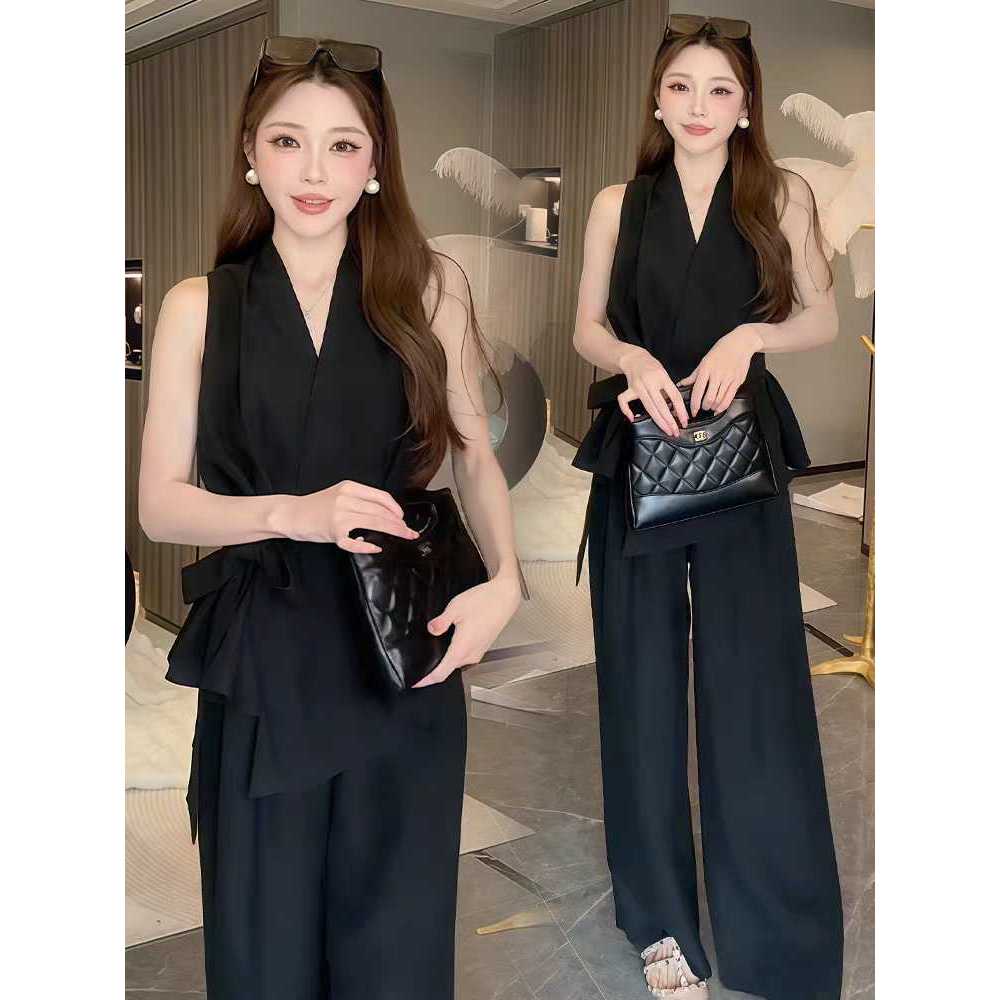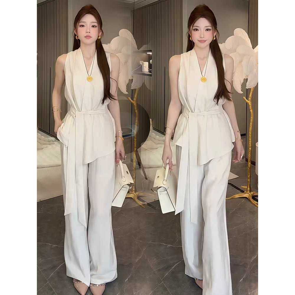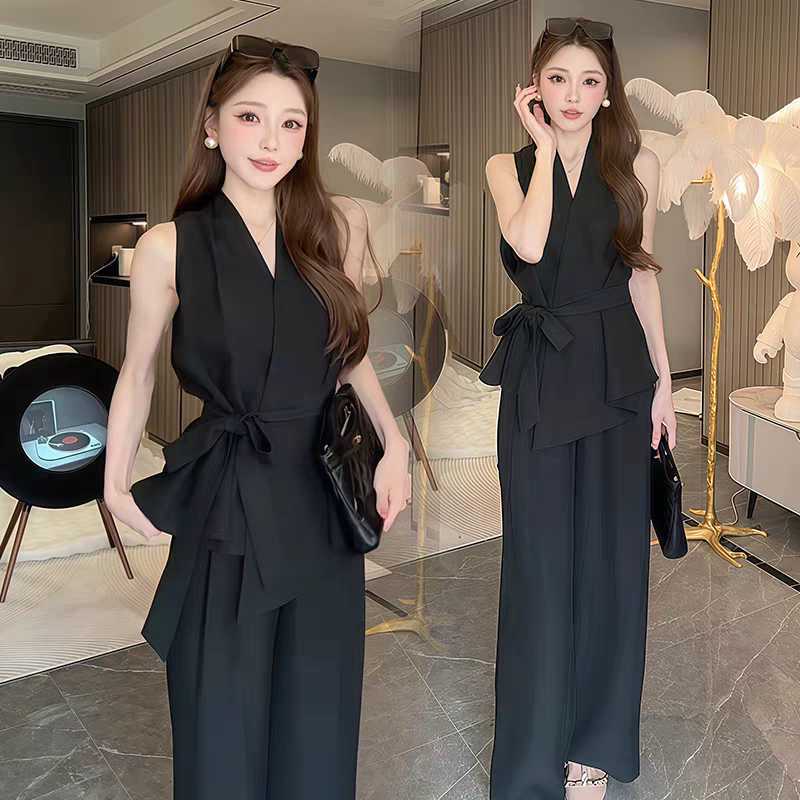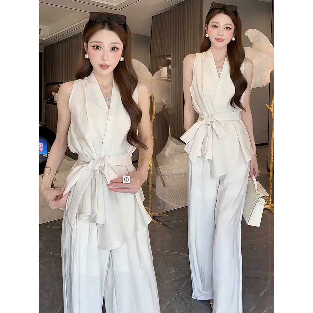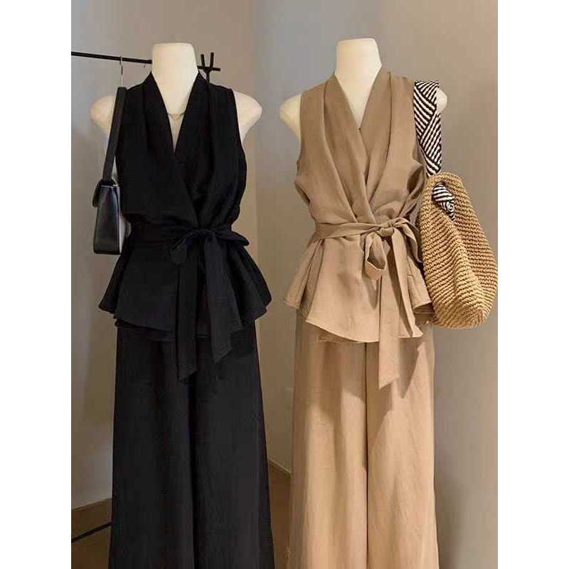 baao Stylish Sleeveless tops+pants with Bow Belt terno set