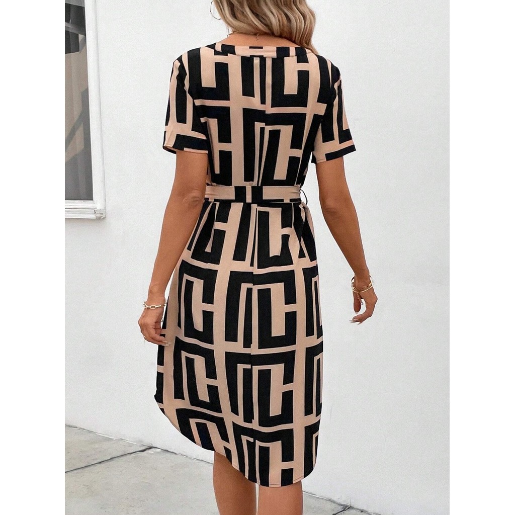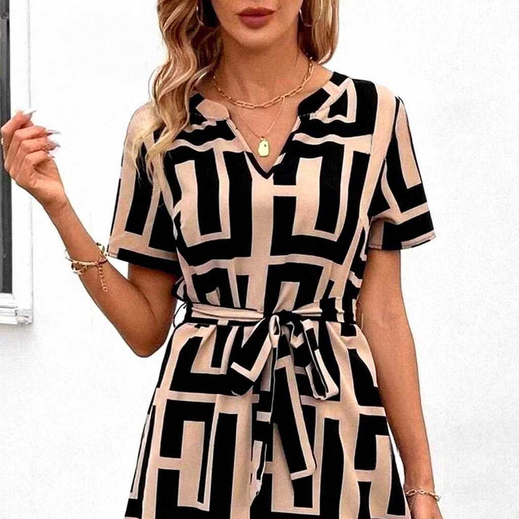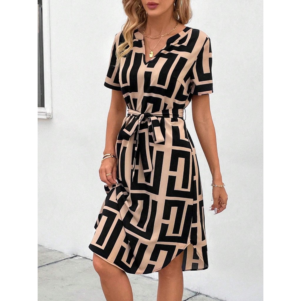 baao Women Casual Geometric Pattern Lace Up Dress