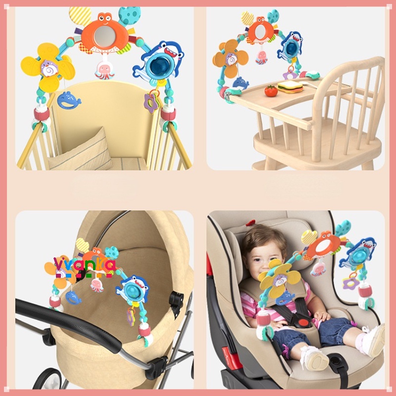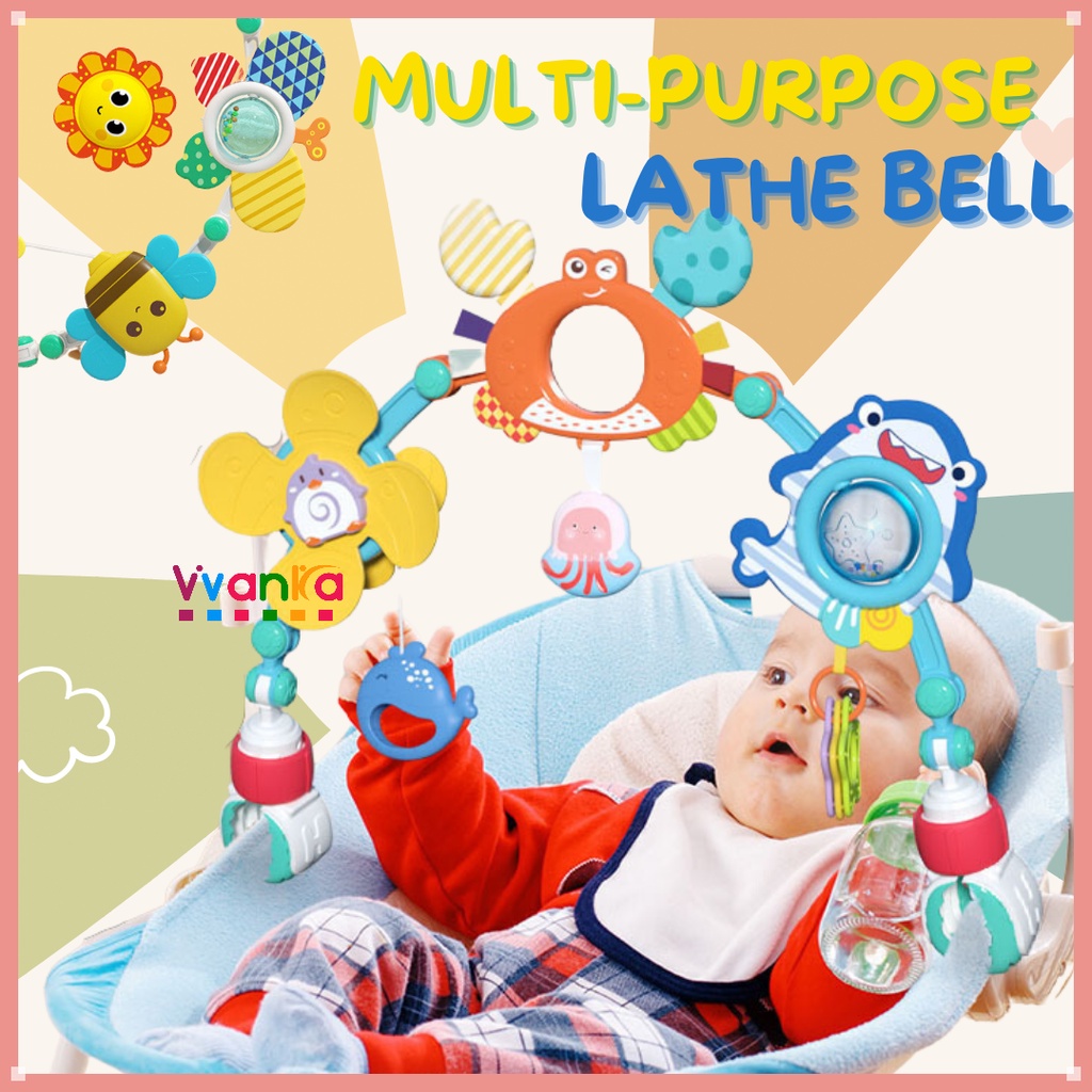 Baby Bed Bell Baby Toy Musical Crib Mobile Bed Bell Holder Rattles Comfort Toys Sensory Development Hanging Toys for Newborn Infant Boys Girls Stroller Mobile Crib Bell Toy for Baby Stroller Crib Play